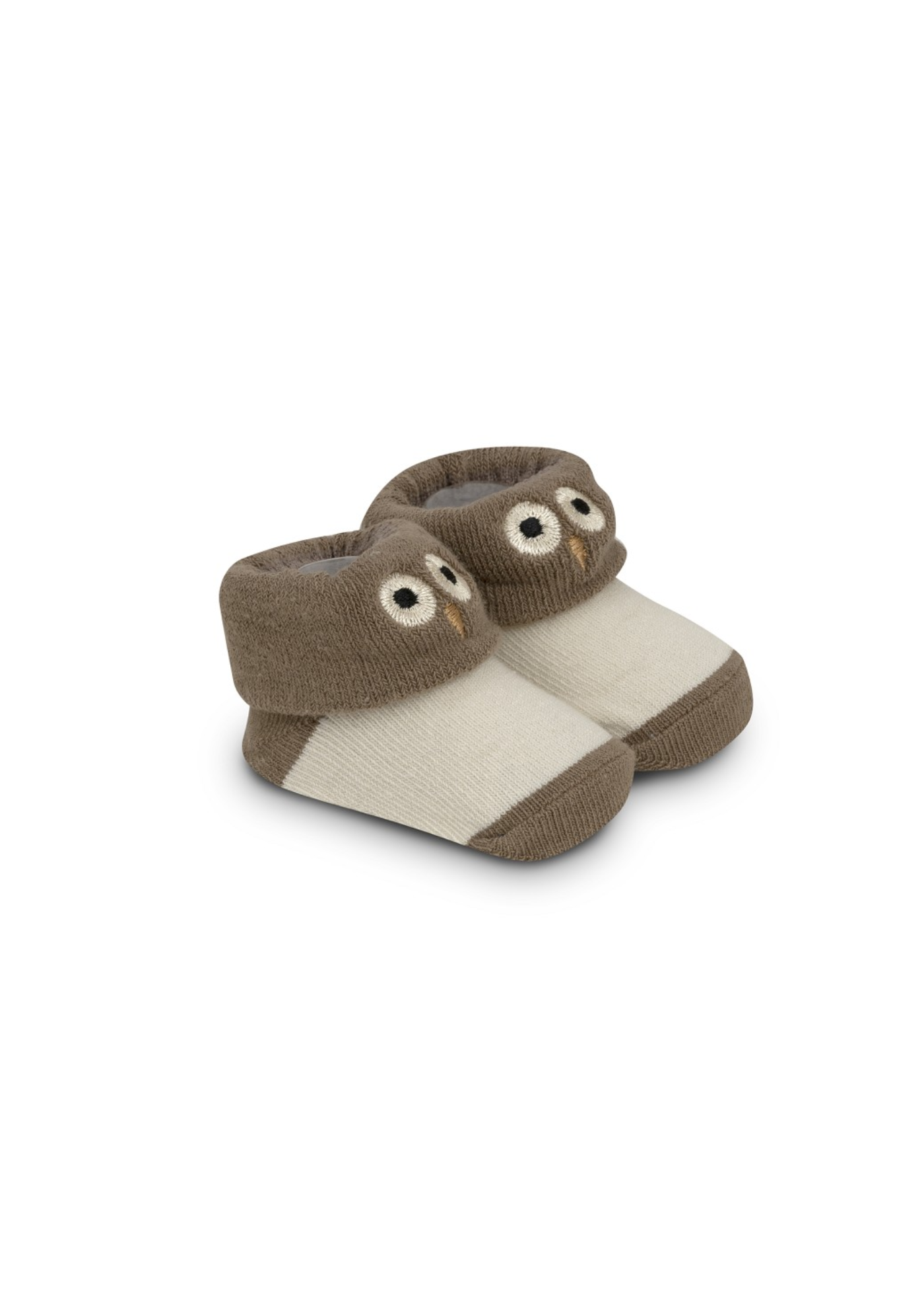 Carapins de malha para bebé recém nascido. Com design de mocho.