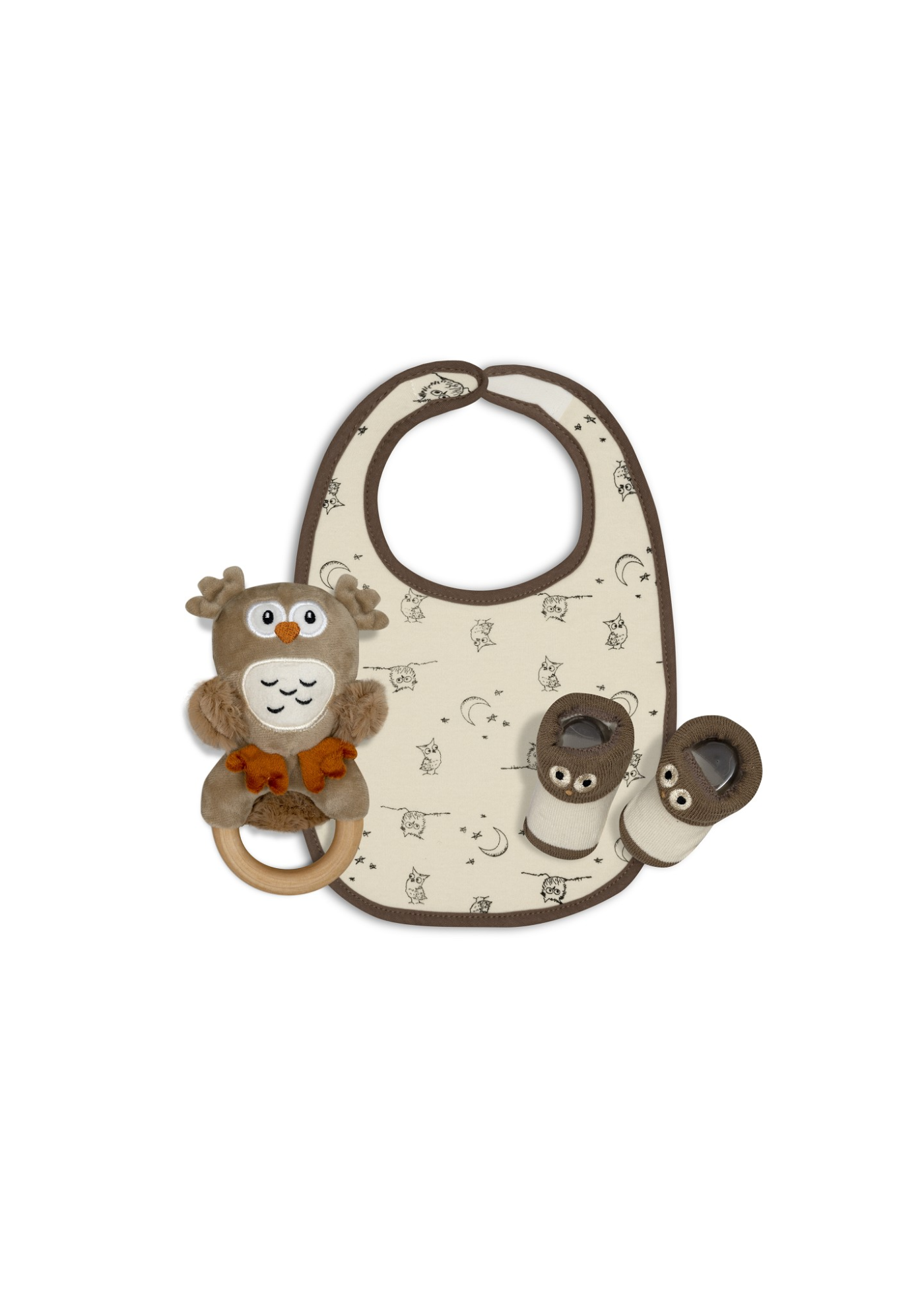 Babete com designe de mocho, aperta com velcro atrás. Facilidade de vestir.