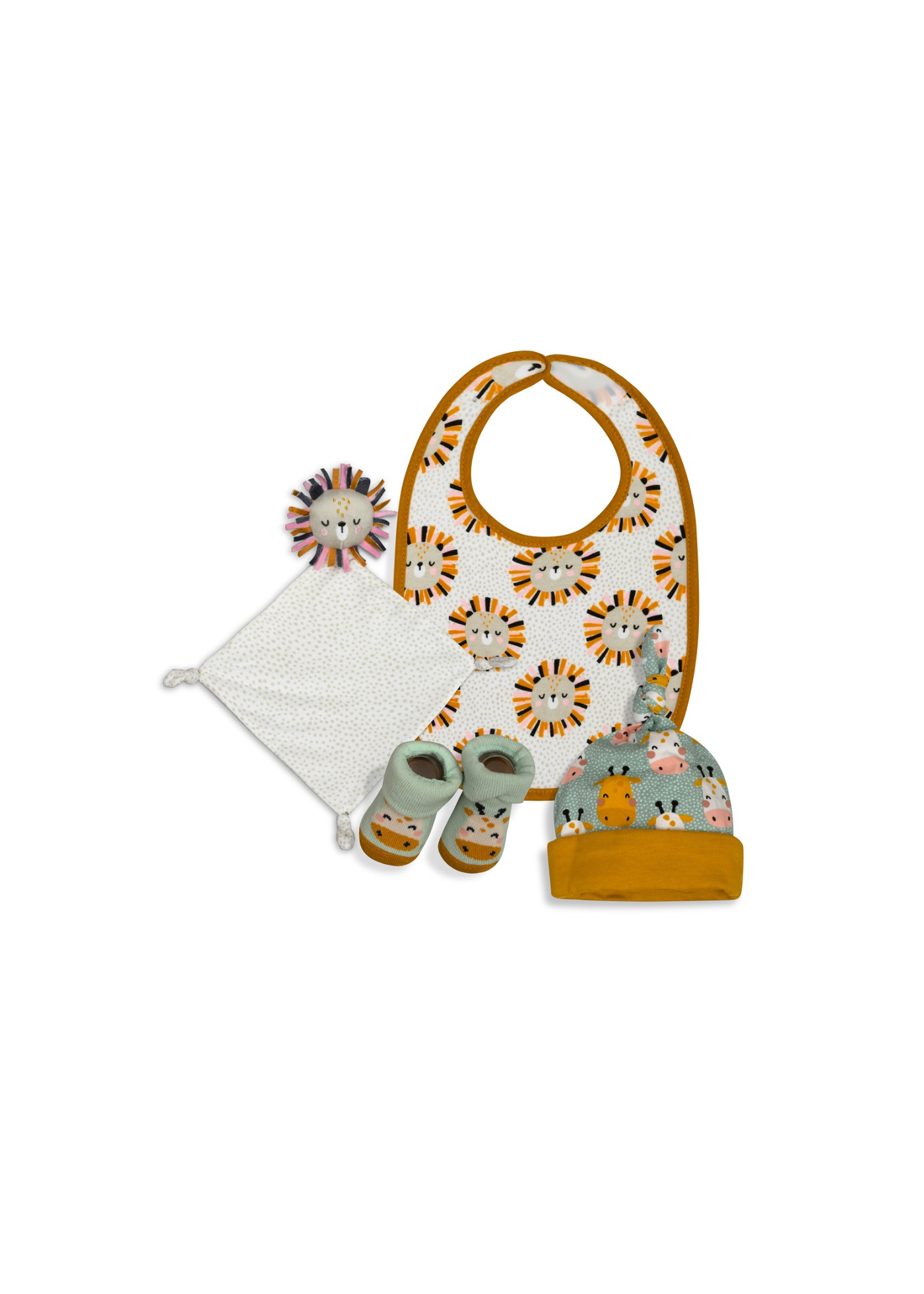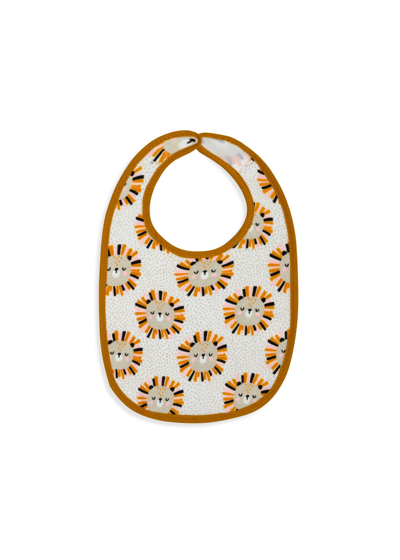 Babete com designe de leão, aperta com velcro atrás. Facilidade de vestir.