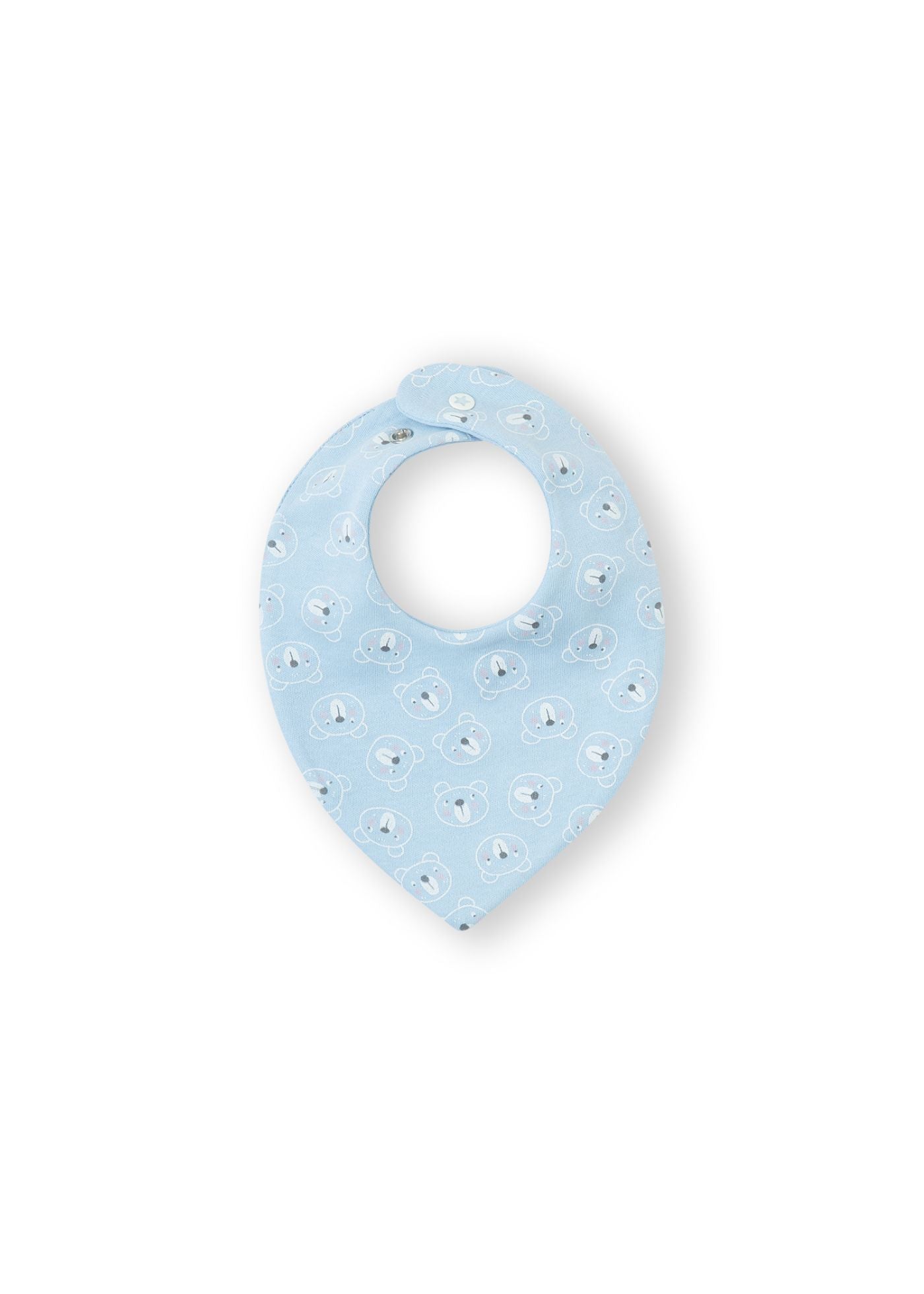 Babete de algodão para menino. Babete com design de ursinhos. A babete de menino aperta com botão de pressão, fácil de colocar, mantém o bebé seguro. Babete com modelo em V.