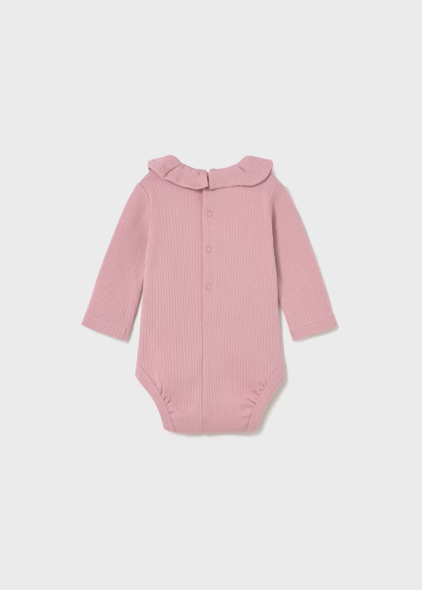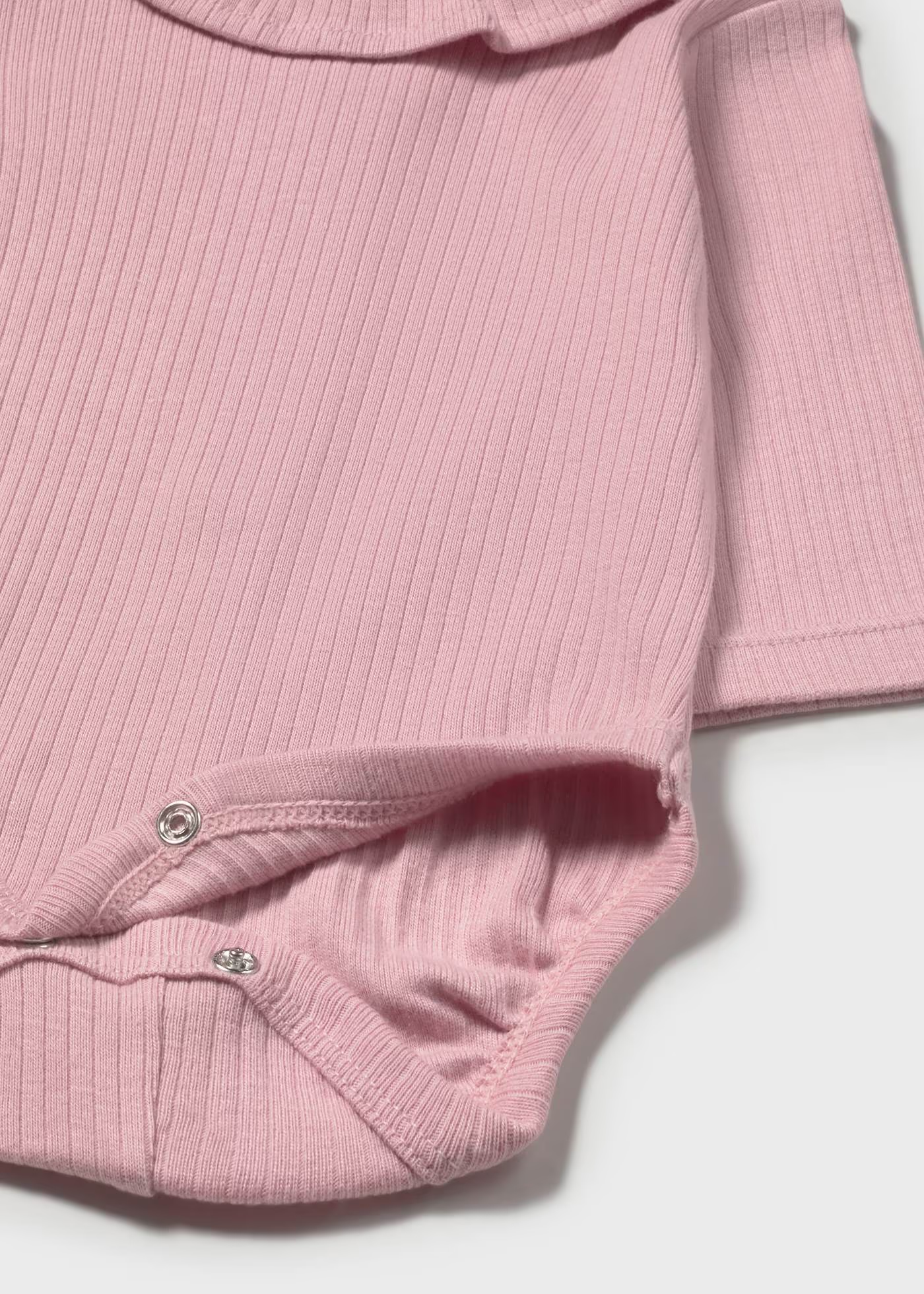 Bodie com gola para menina. Coleção mayoral bebé menina. Botão de pressão para vestir facilmente.