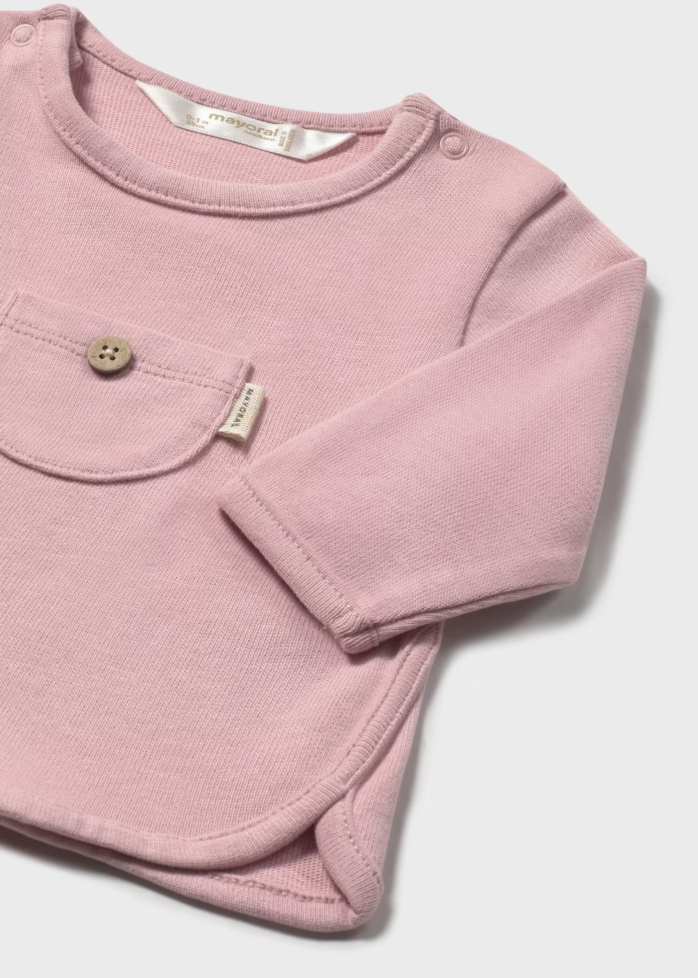 Camisola com bolso. Coleção mayoral para menina. Camisola confortável de manga comprida para bebé. Camisola de algodão.