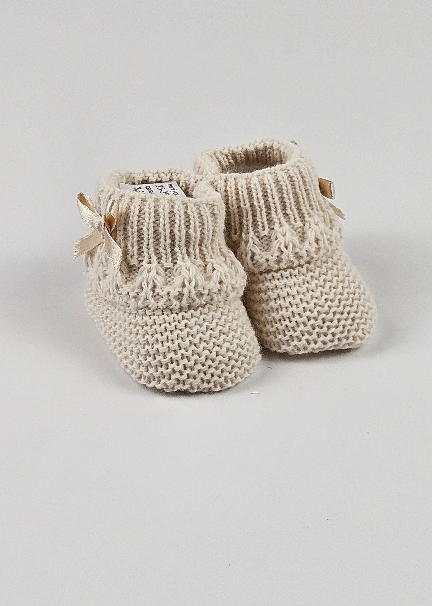 Carapins de malha para bebé. Meia/Carapim com pequeno laço de cetim na lateral