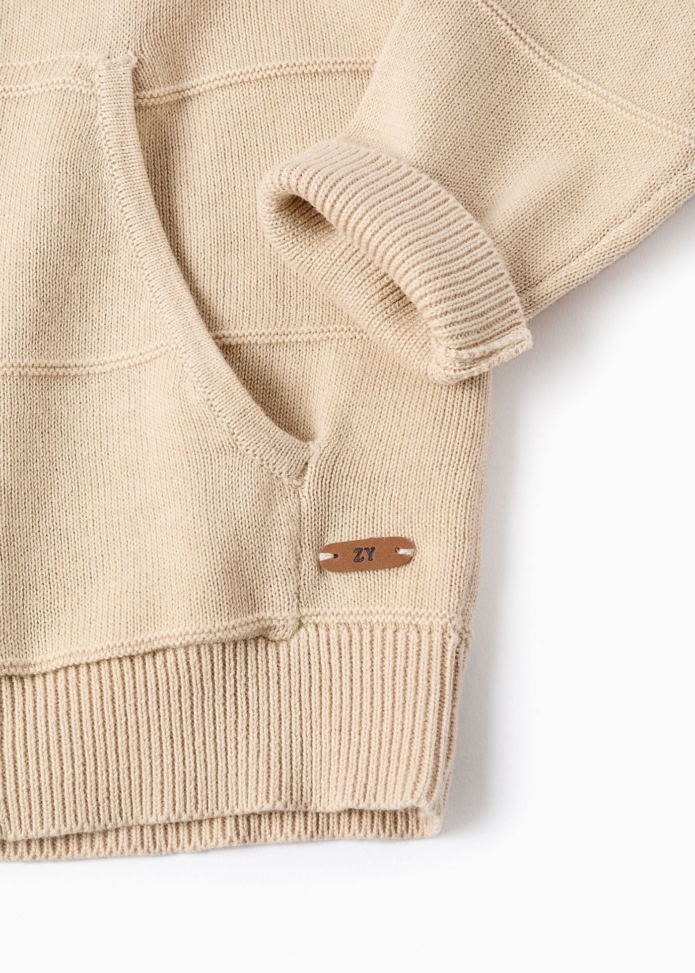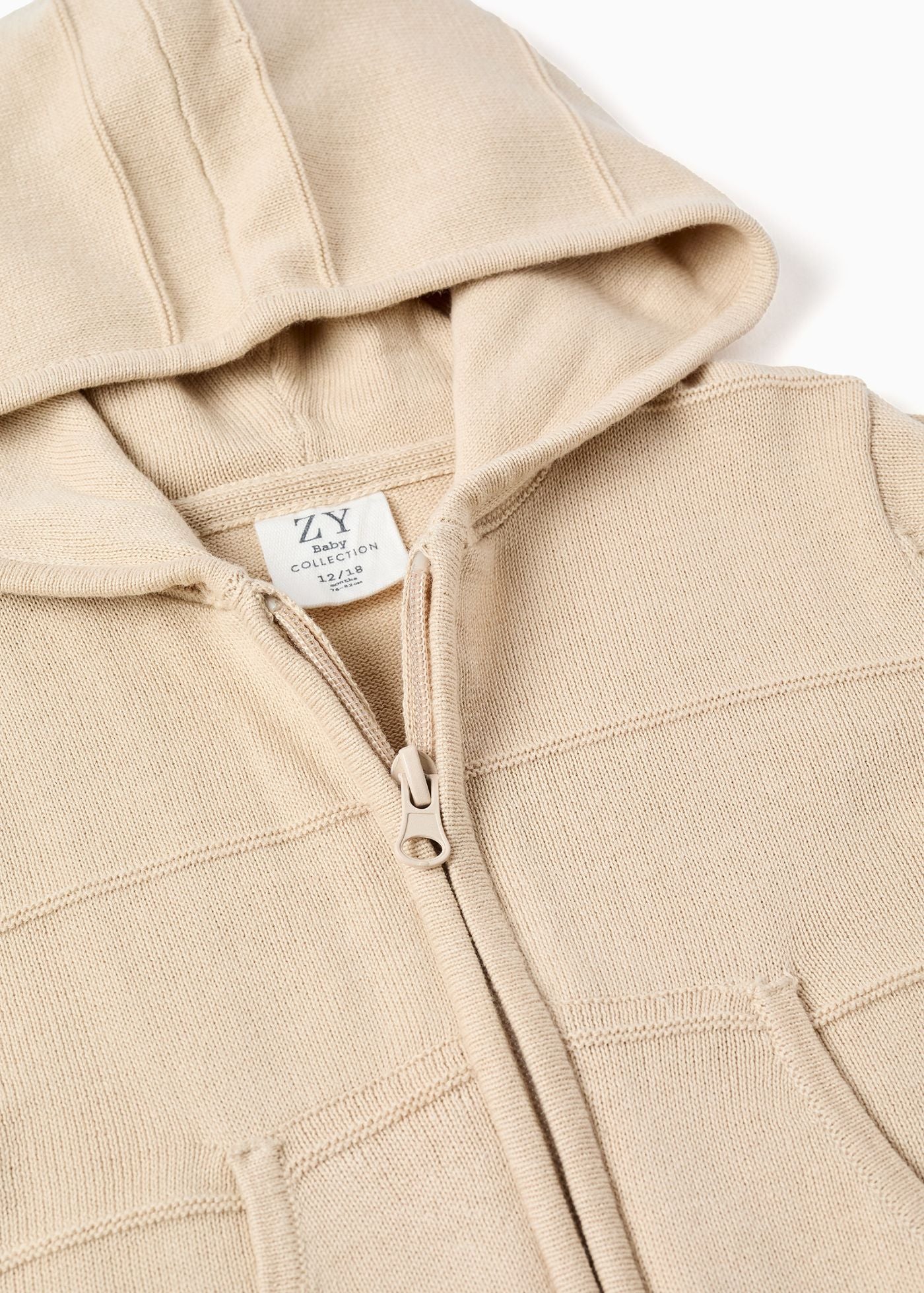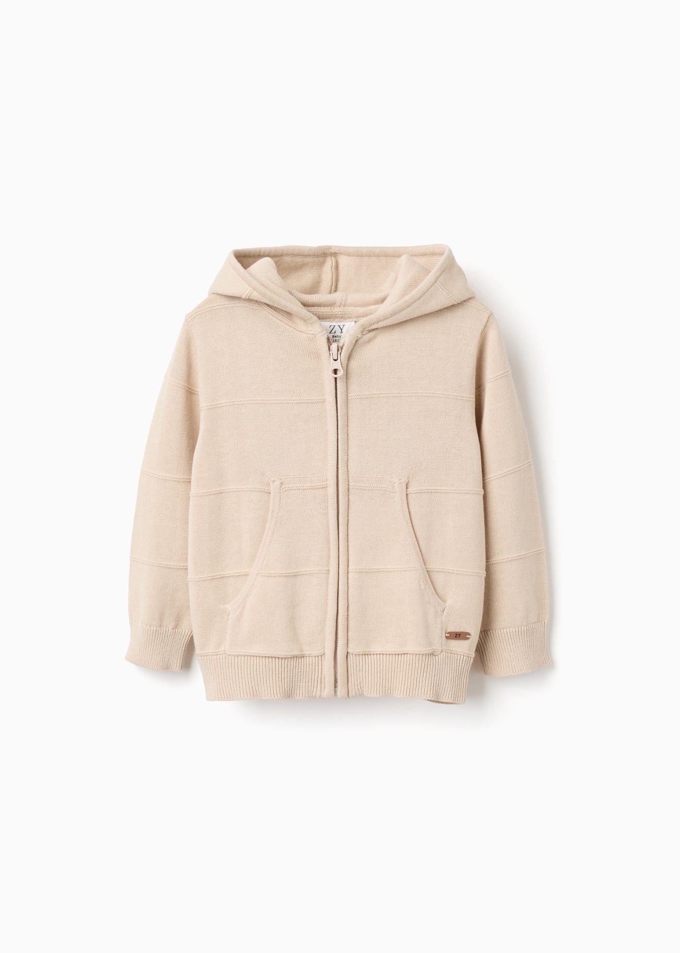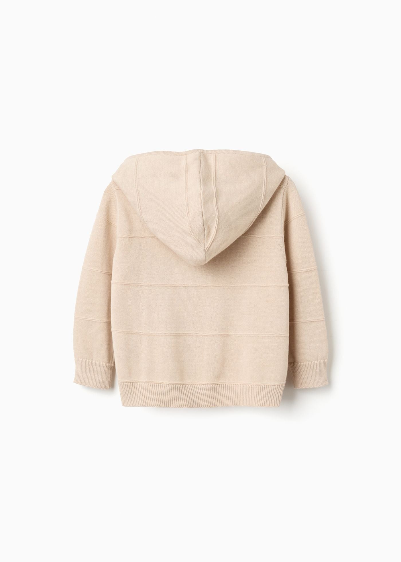 Este casaco de malha bege para bebé menino é ideal para os dias mais frios. Fabricado num tecido macio e respirável, possui um capuz, garantindo que o seu bebé se sinta confortável em qualquer ocasião.
