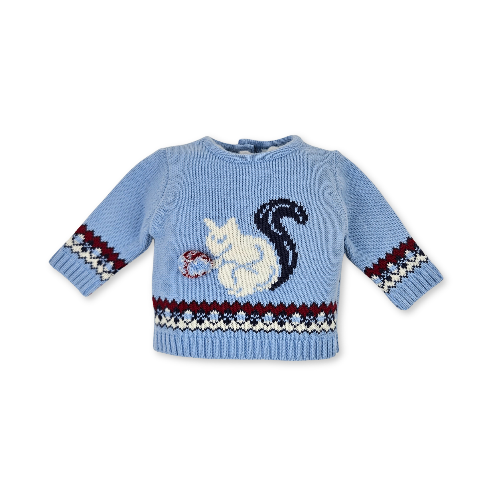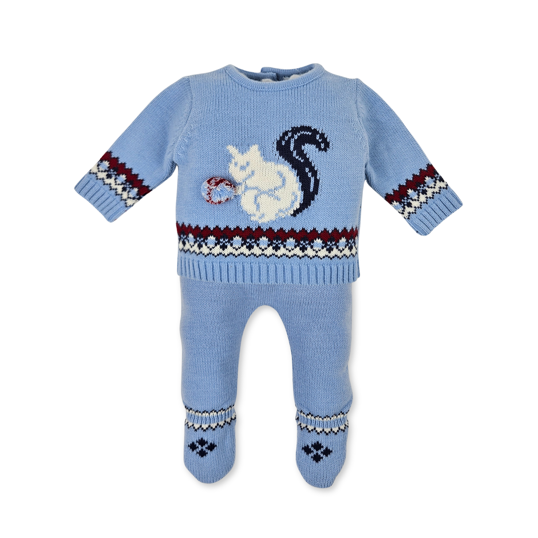 Camisola de malha com designe de esquilo. A camisola de recém nascido conta com punho elástico e botão atrás para melhor conforto.