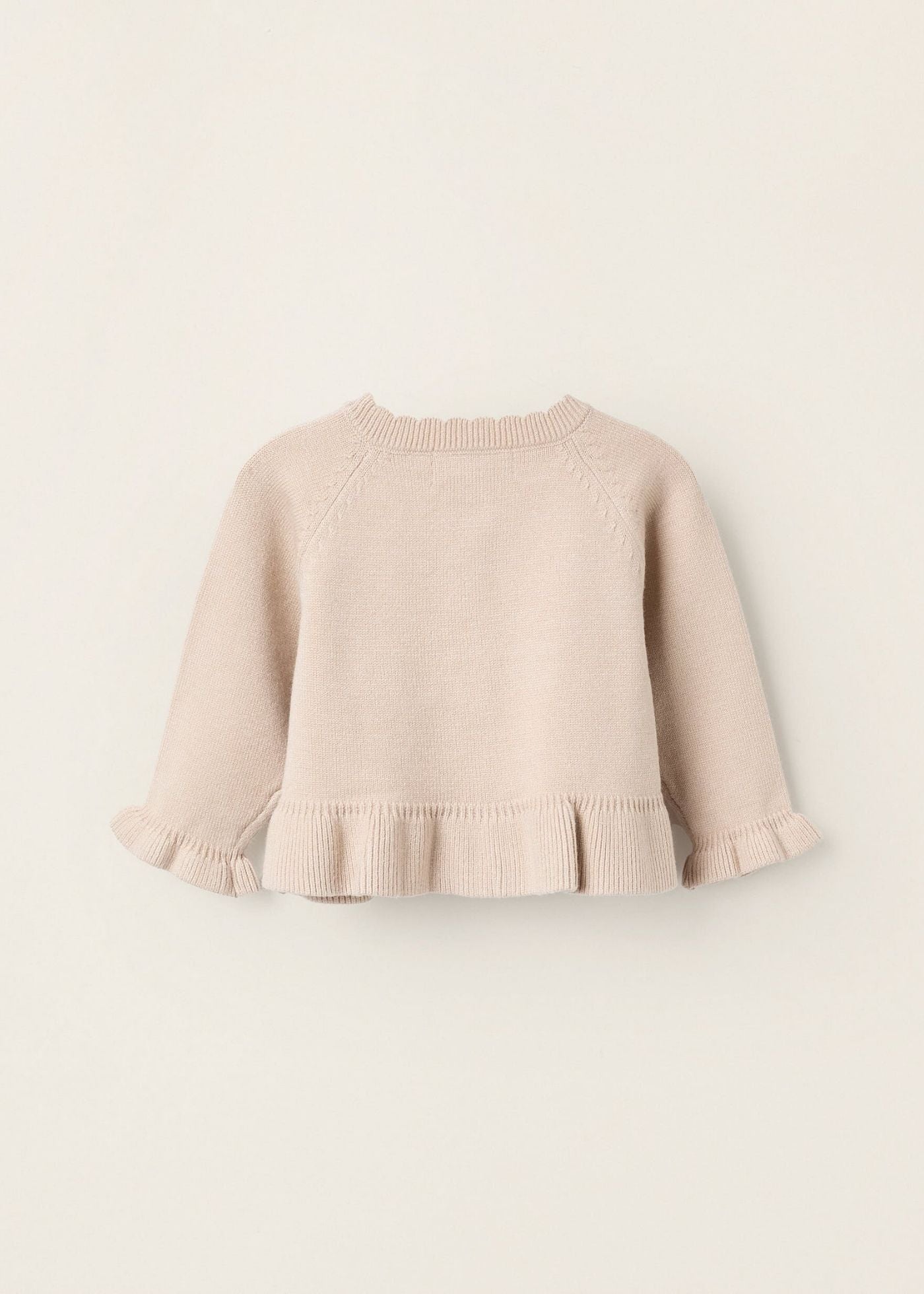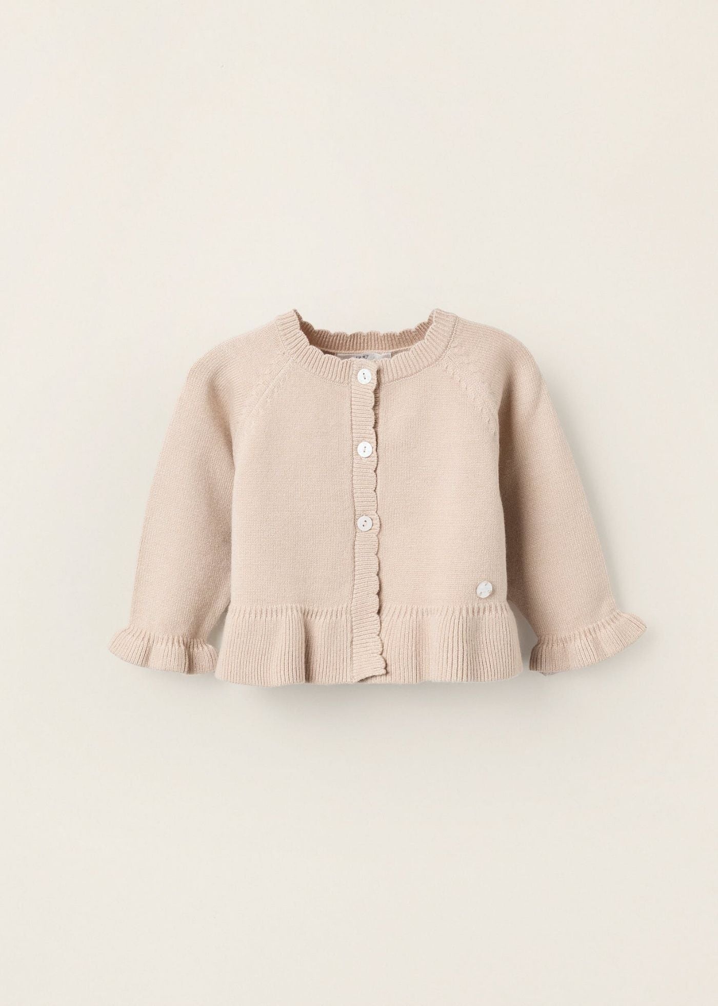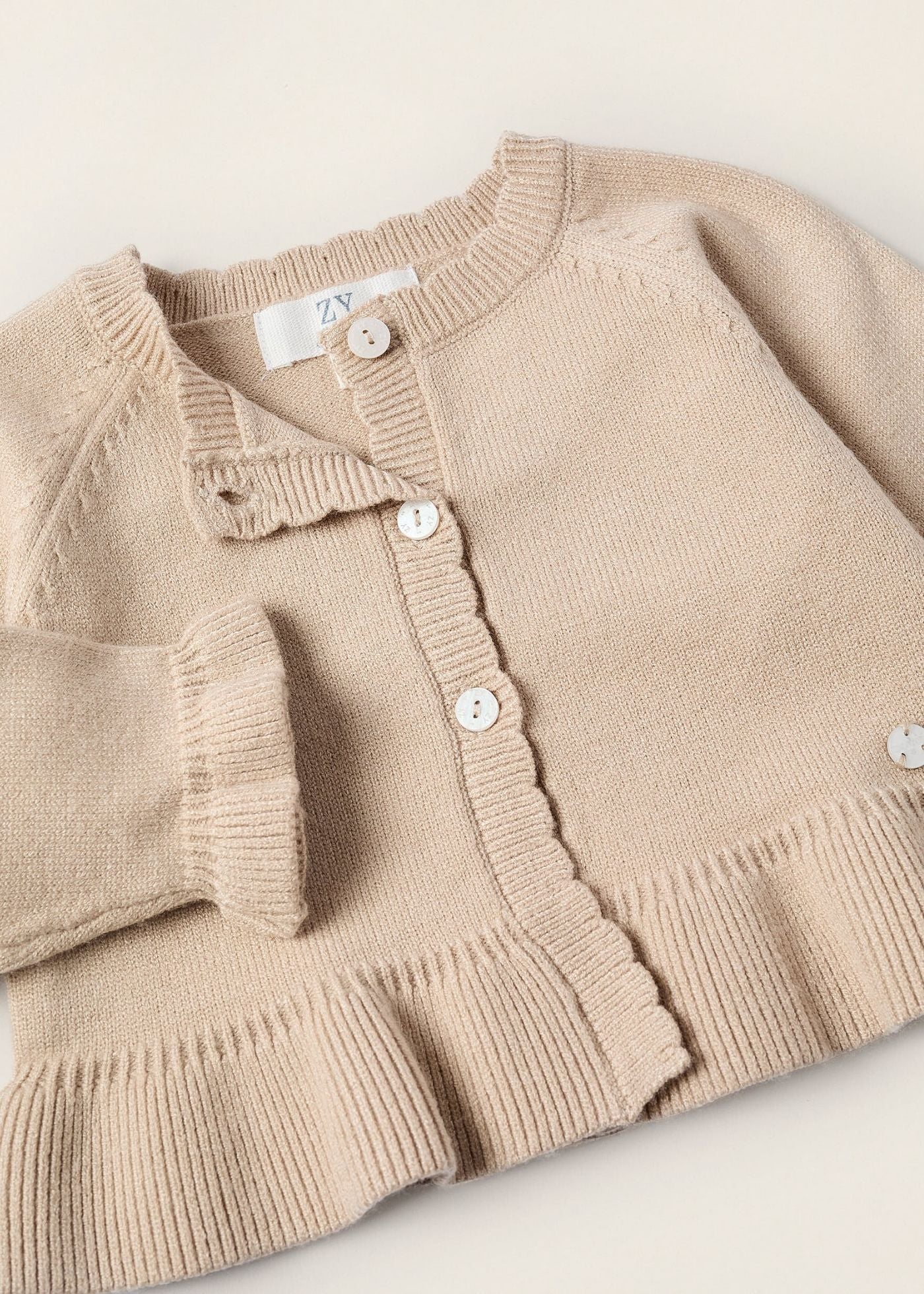 Casaco de Malha com Folhos para Recém-Nascida, Bege