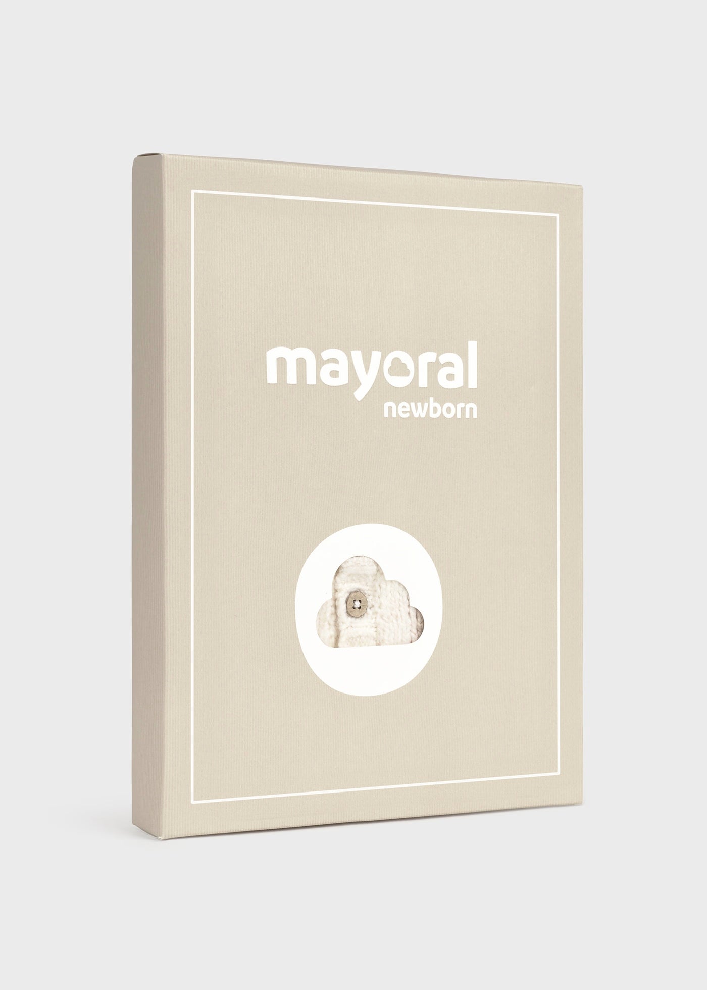 Pack de 3 peças unisexo recém nascido. Conjunto mayoral bebé. Casaco de bebé com designe de caracol. Calça com cintura e tornozelos canelados para melhor conforto. Conjunto unisexo confortável para os primeiros meses, prático de colocar, ideal para o bem estar da bebé recém nascida.