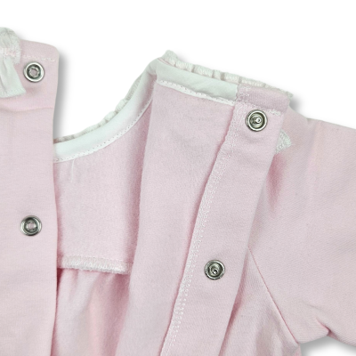 - Fofo em tecido cardado 100% algodão cor de rosa, suave e respirável. O detalhe em tecido plissado no peito adiciona um toque de sofisticação. Os botões de pressão nas costas e entre as pernas garantem praticidade e conforto. Perfeito para usar em casa ou em passeios, combina com diversas peças do nosso enxoval. Descobre as meias que combinam com o fofo!