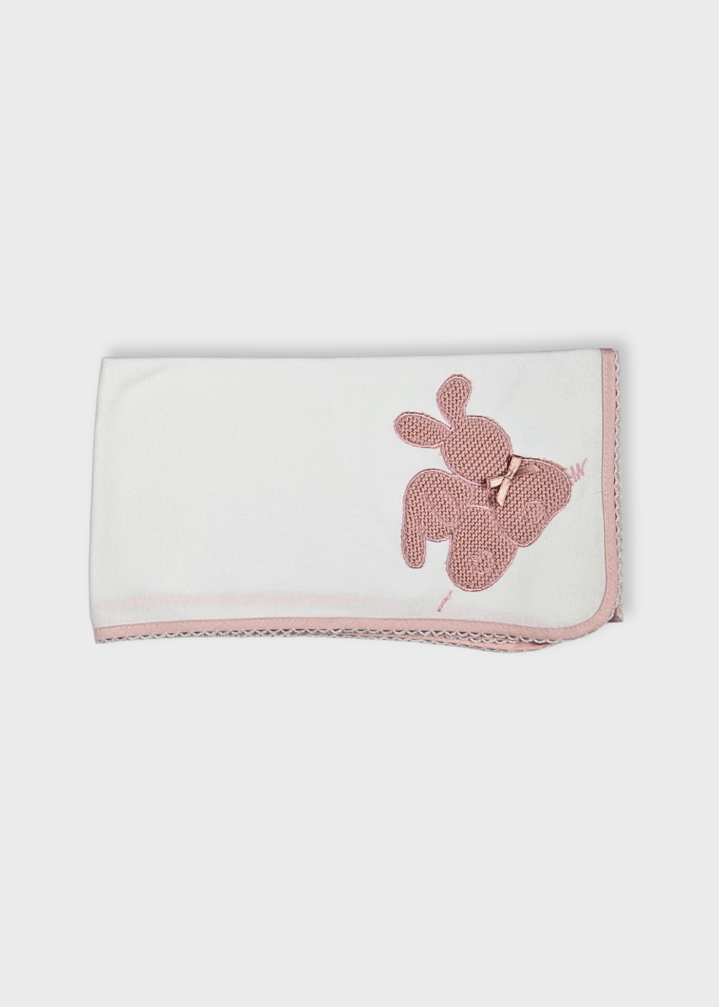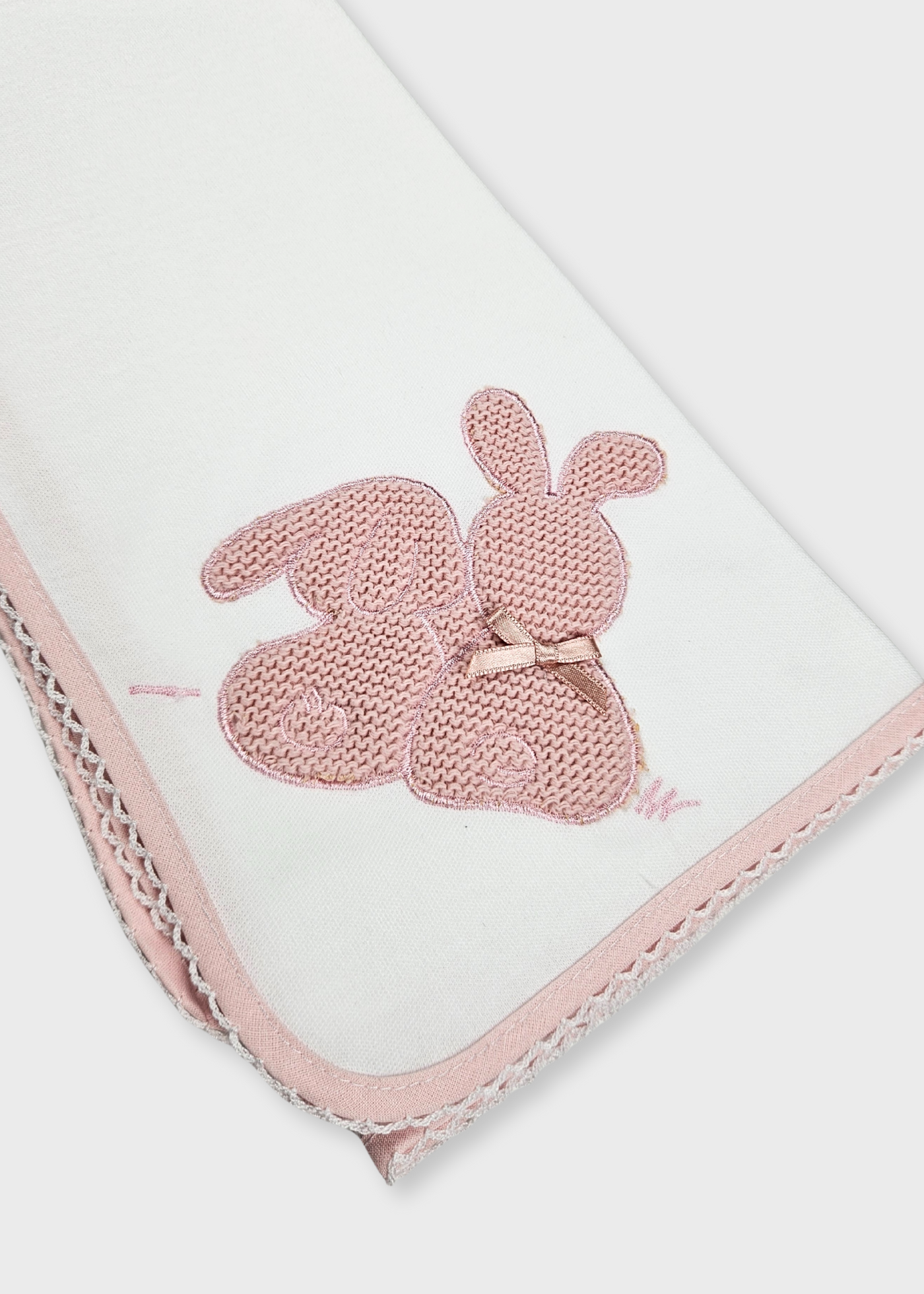 Fraldinha em algodão, com designe de coelhinho bordado em malha. Fralda indicada para o uso diário do bebé. A fralda em algodão de bebé permite melhor conforto para o uso.