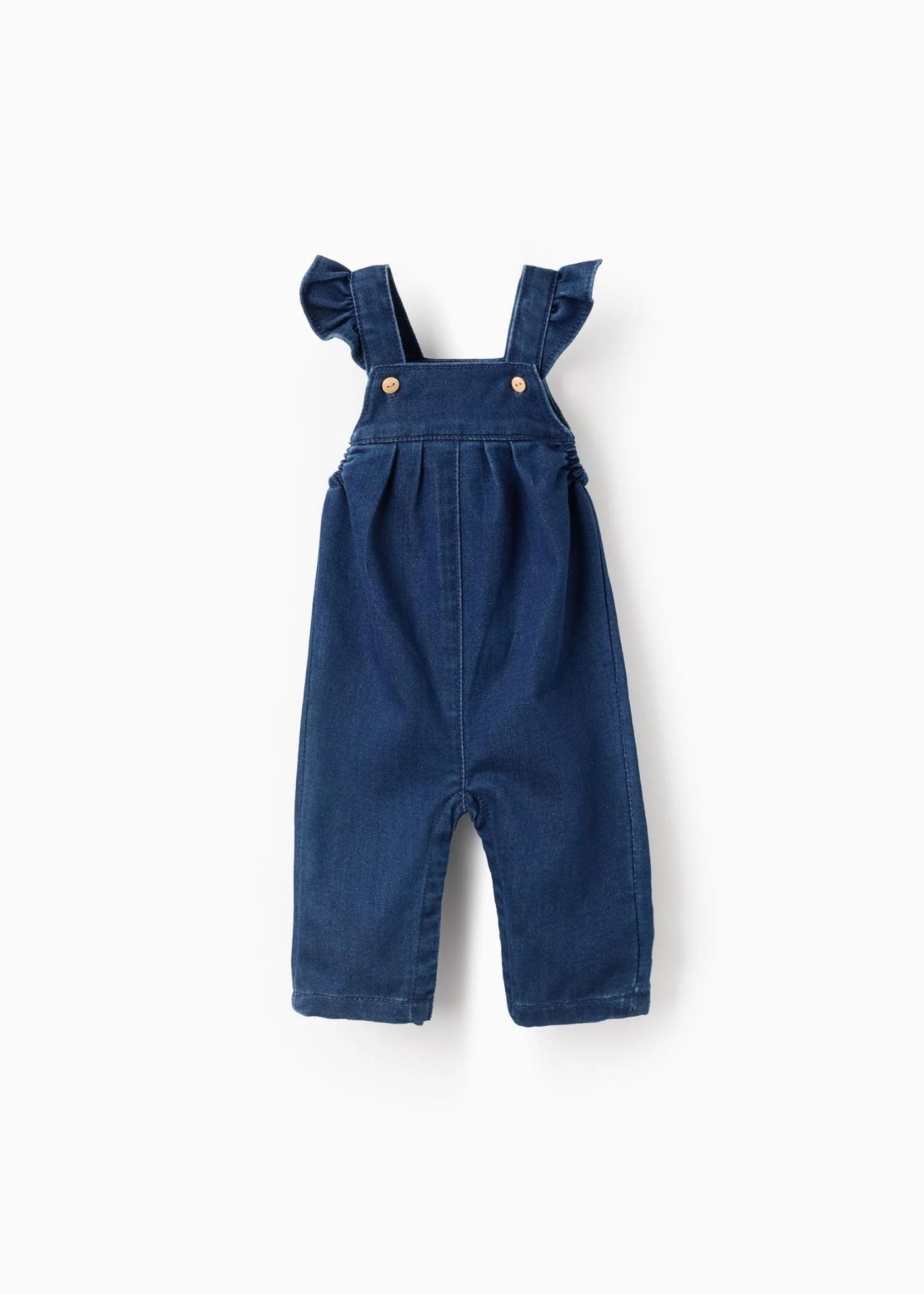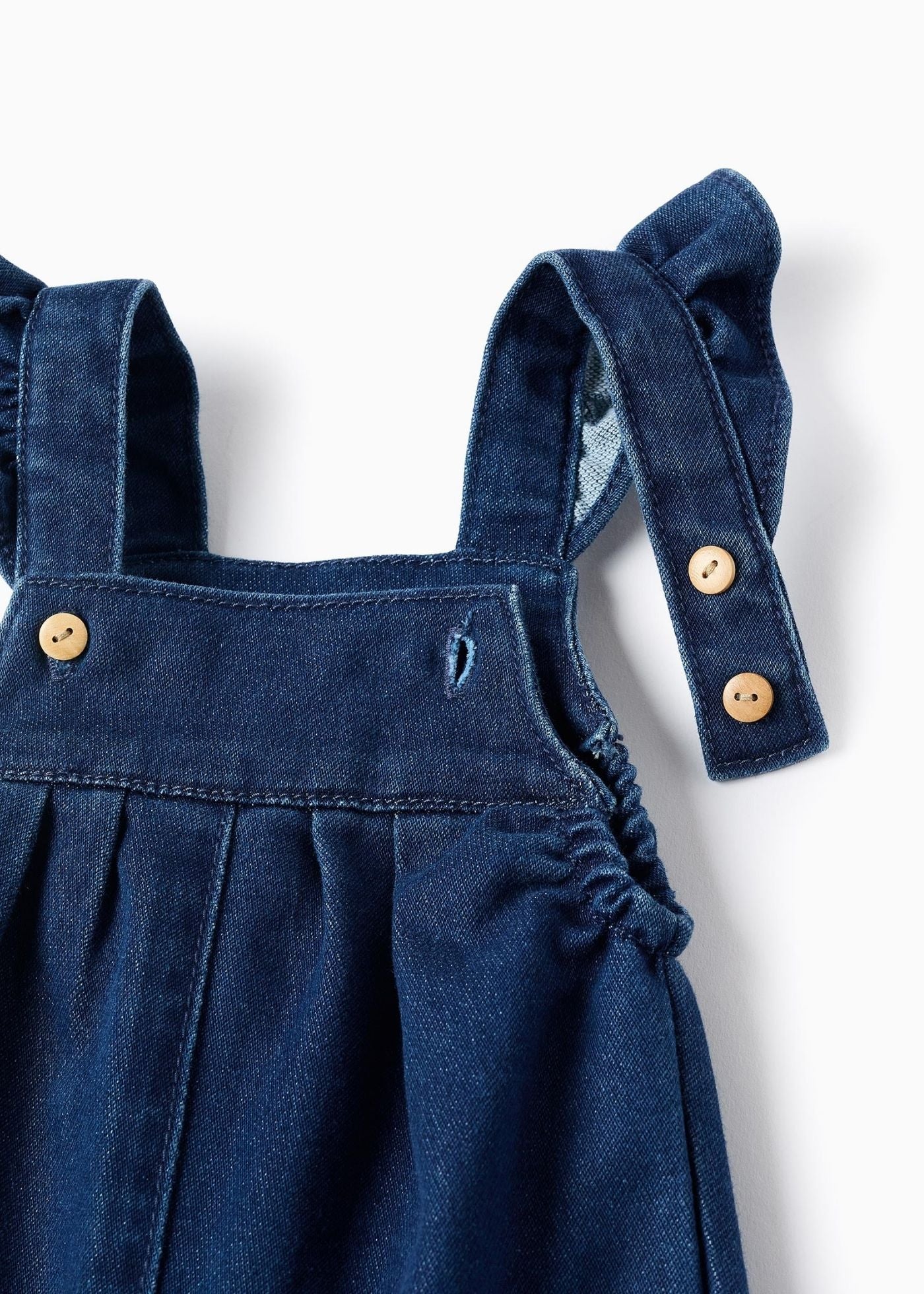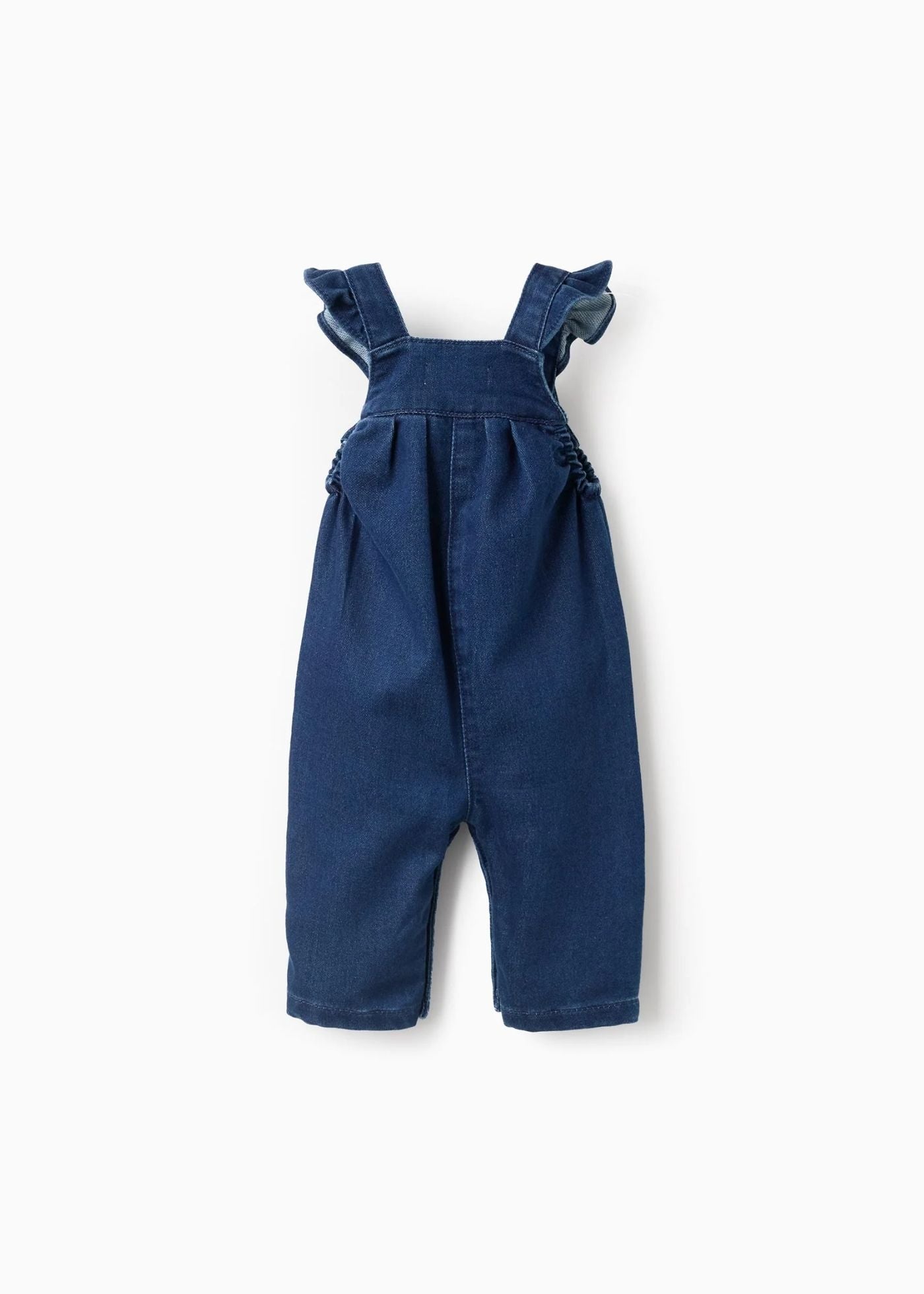 Jardineiras de Ganga com Folhos para Recém-Nascida, Azul