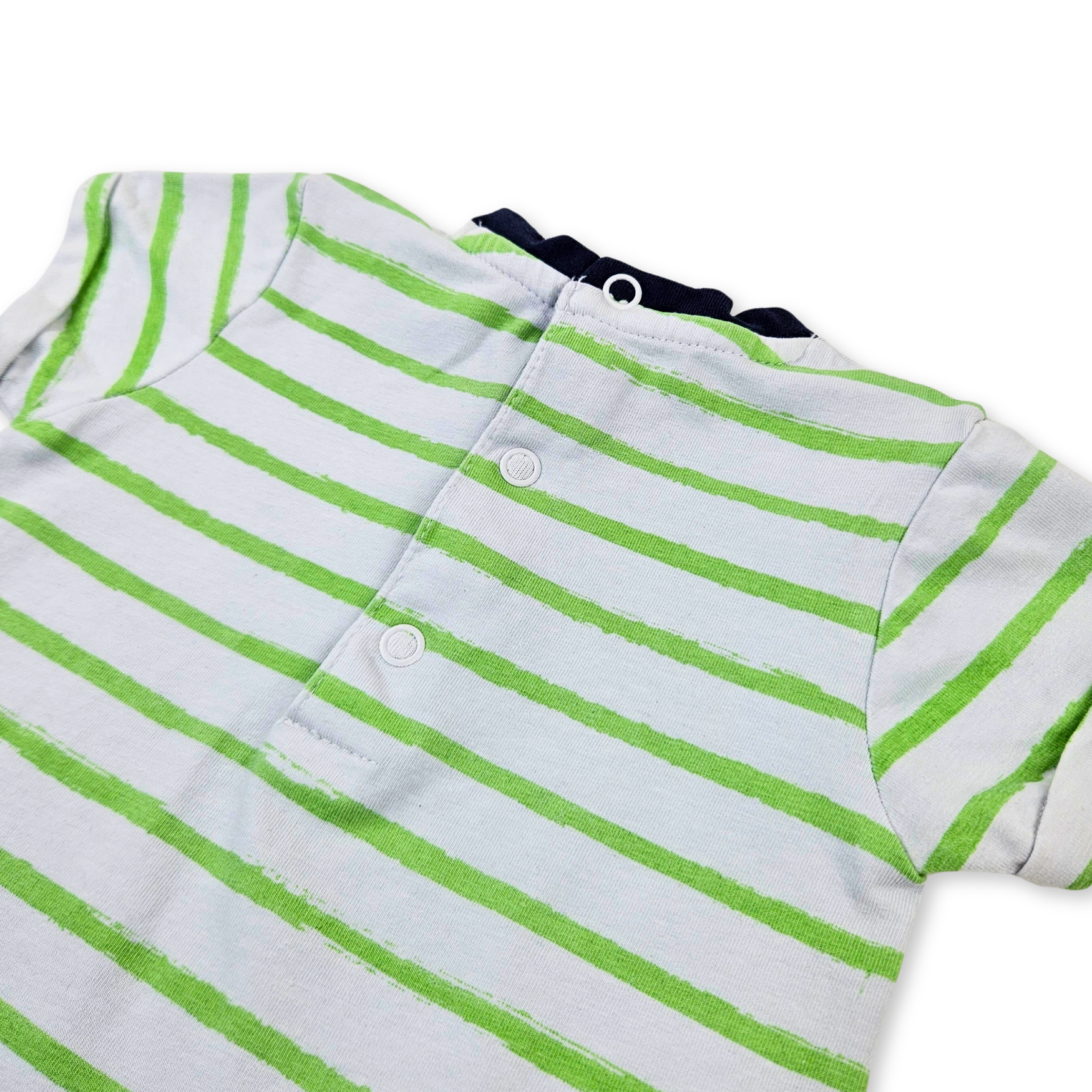 - Macacão para bebé. Aperta com botões de pressão entrepernas e nas costas para facilitar a colocação da peça. Design estampado