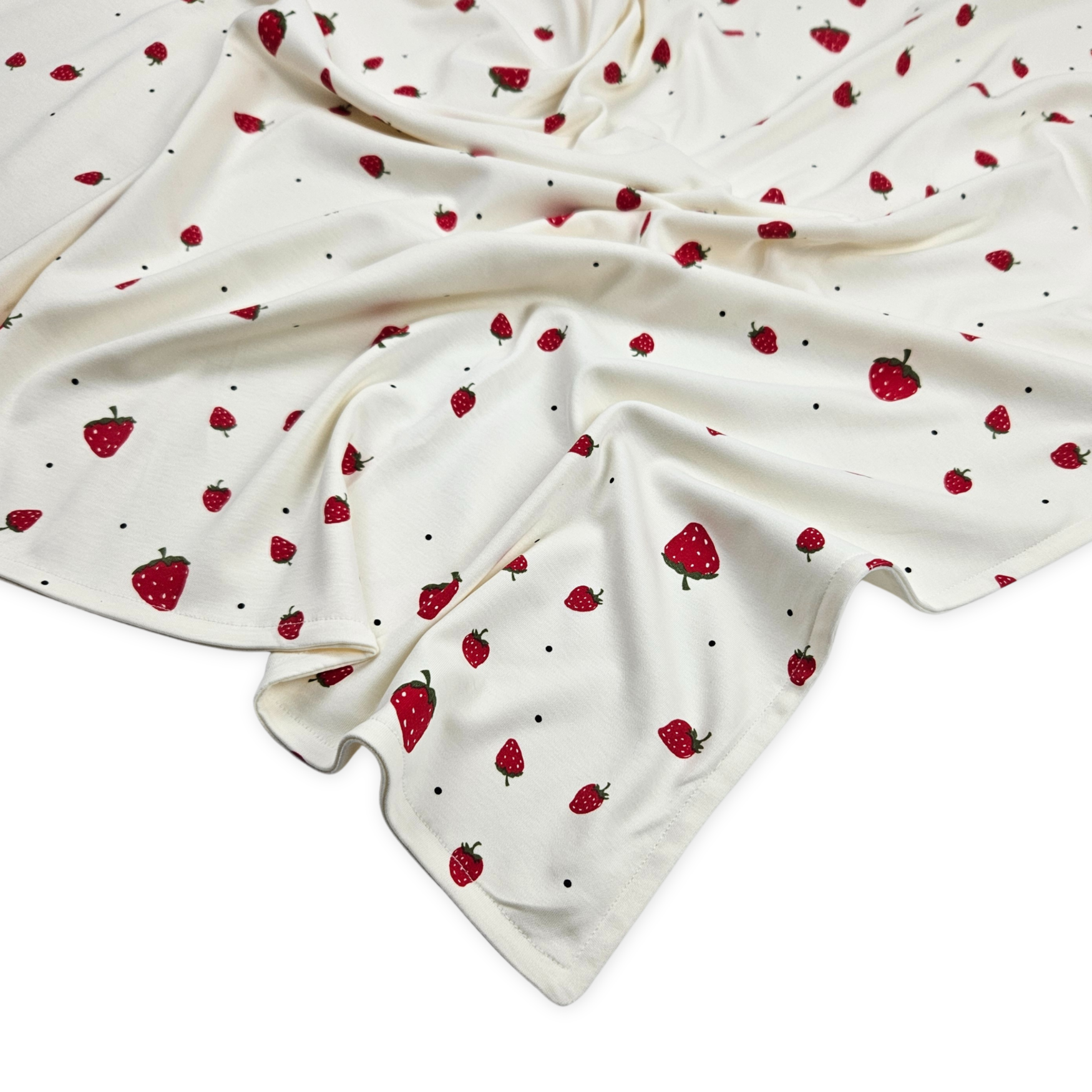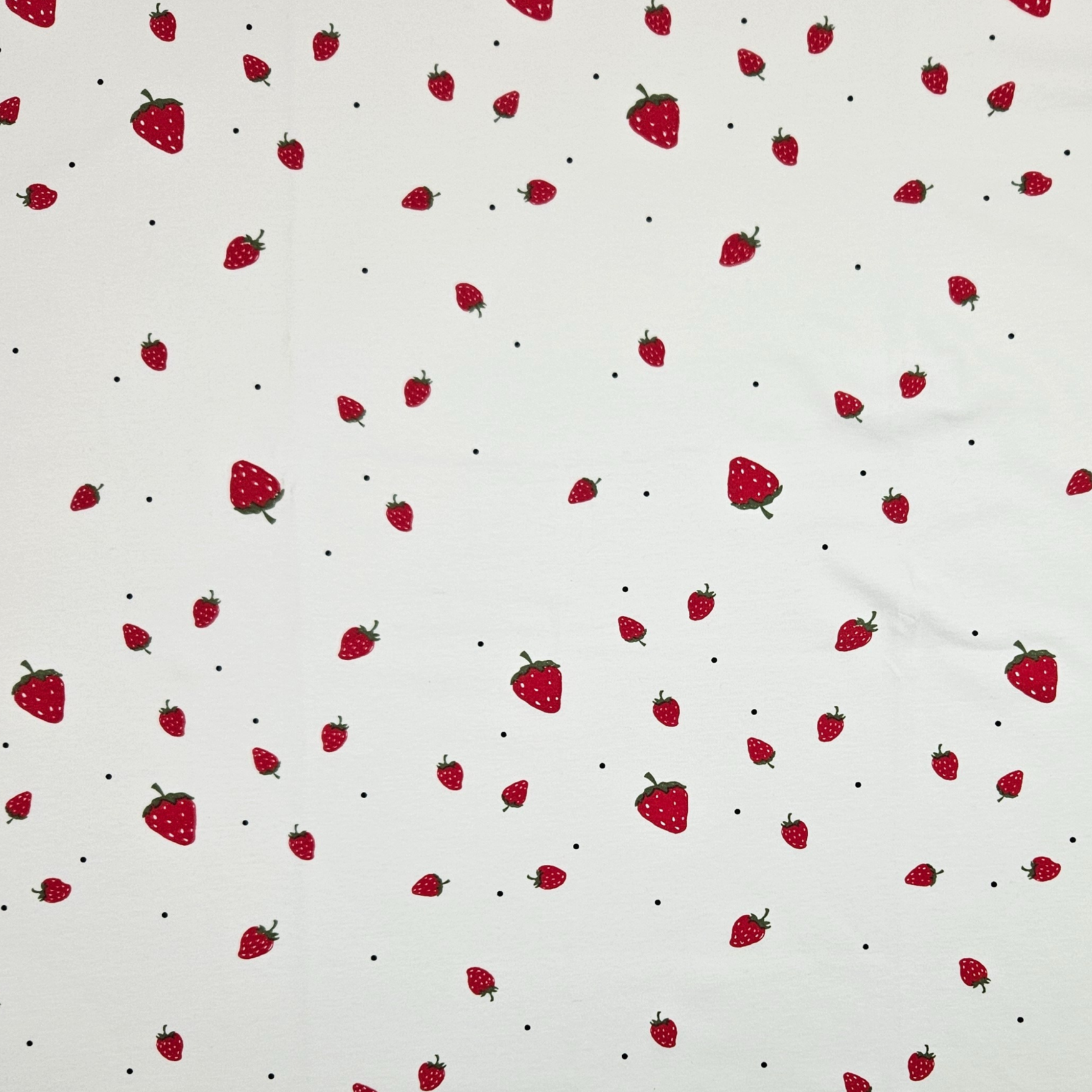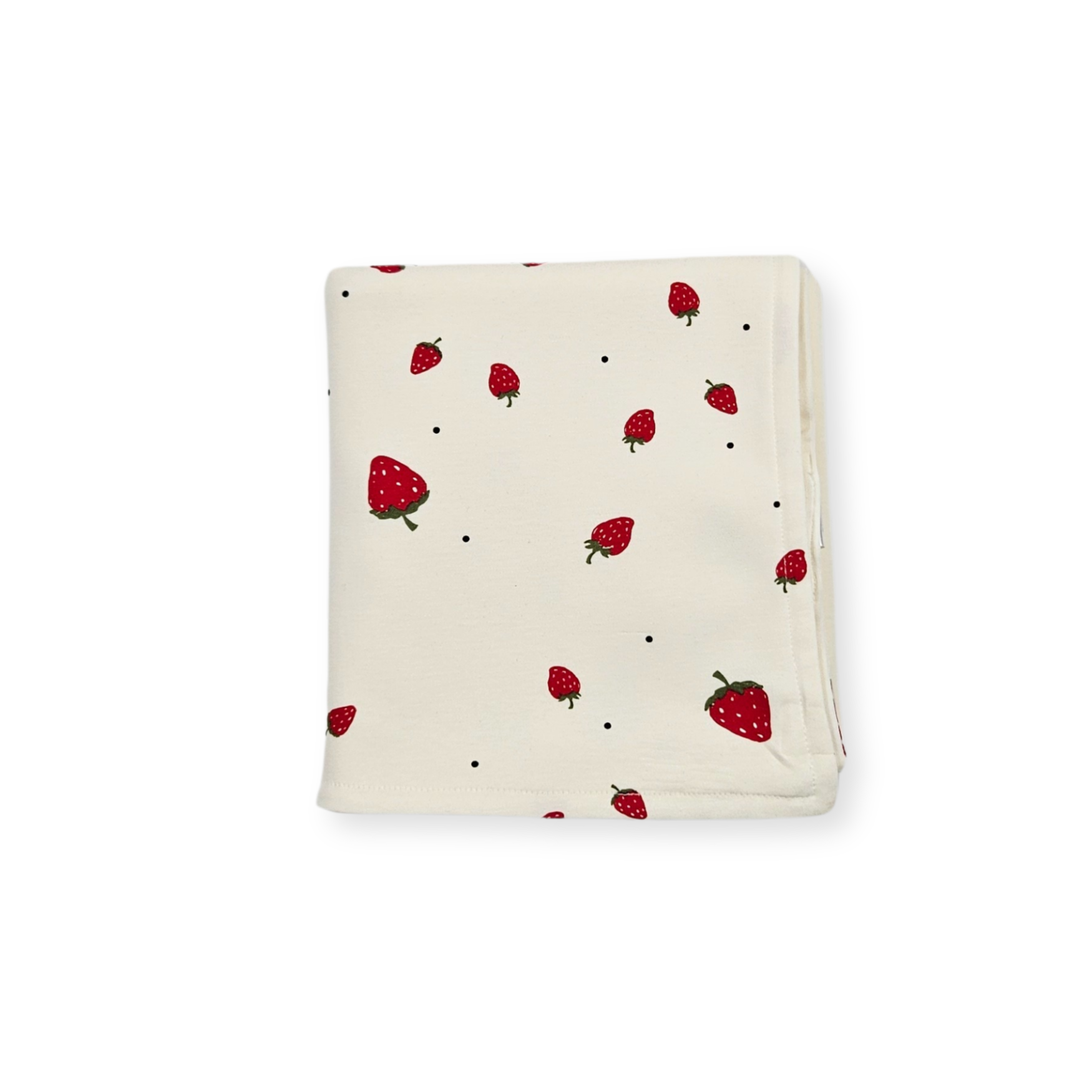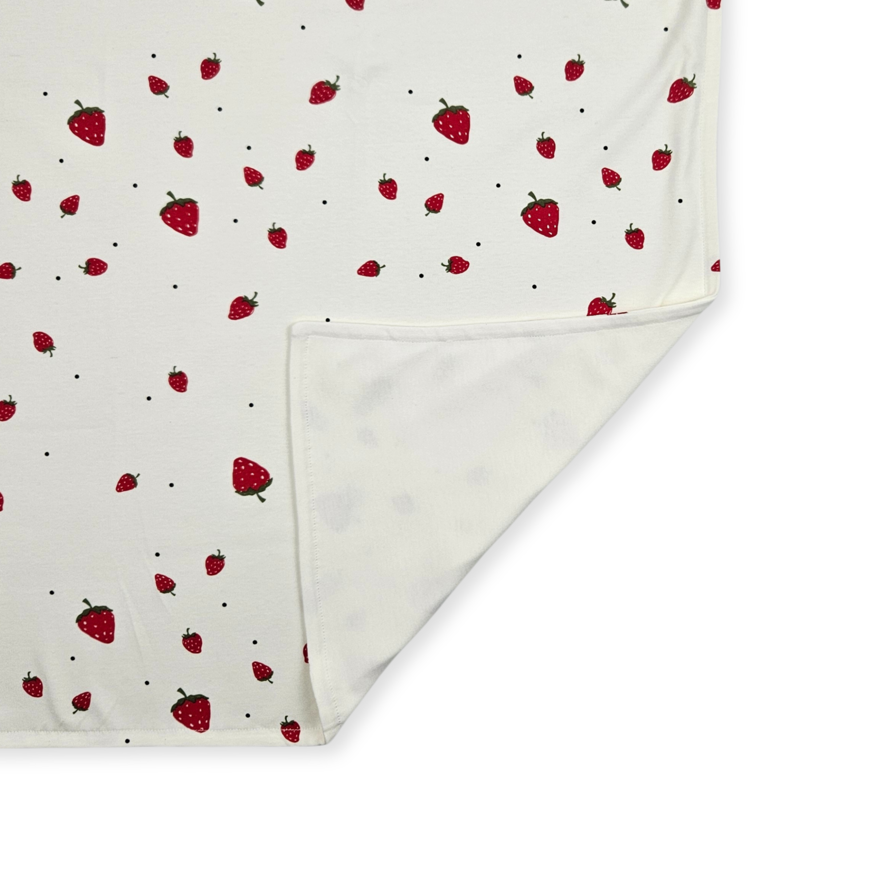 - Manta fina Branca com estampado de morangos. Manta 100% Algodão recomendada para dias mais frescos.