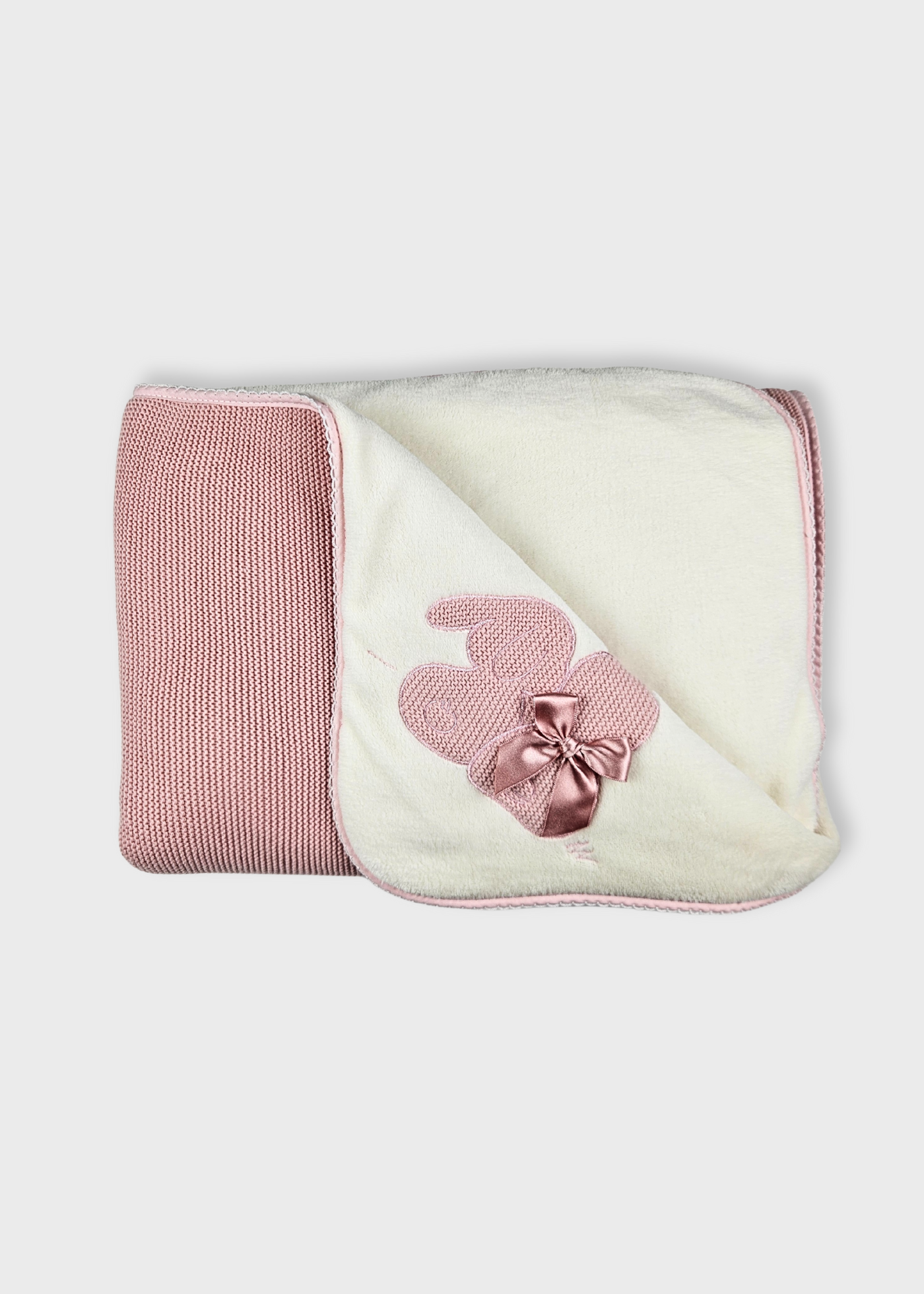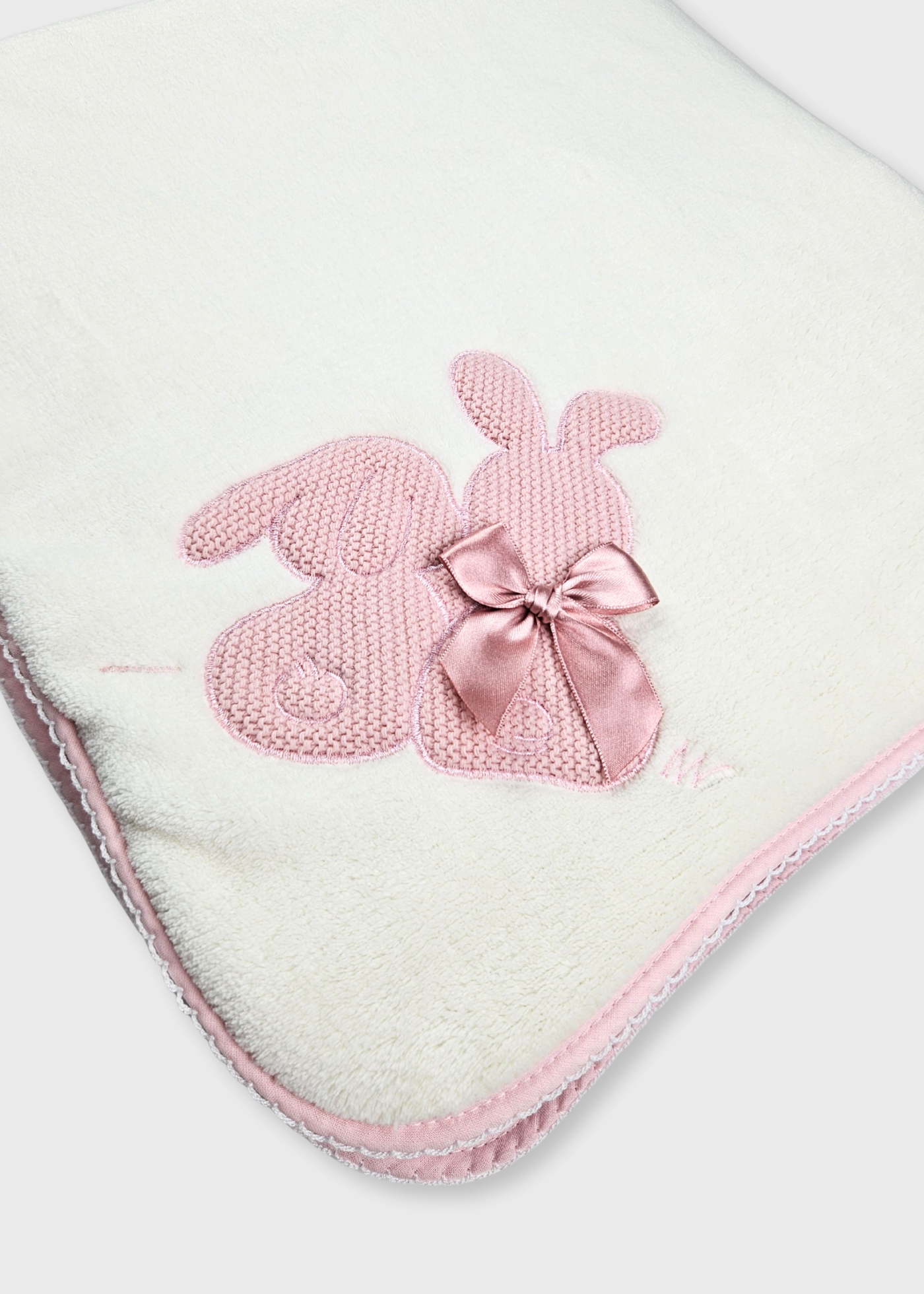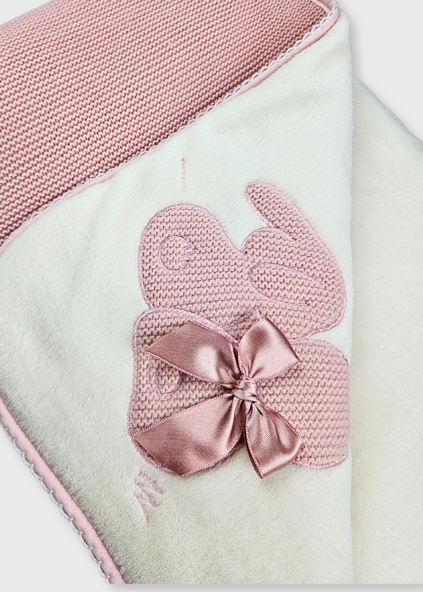 Manta em algodão em malha com carda. Designe de coelhinhos bordado em malha. A manta de bebé com carda ideal para manter o bebé na temperatura correta.