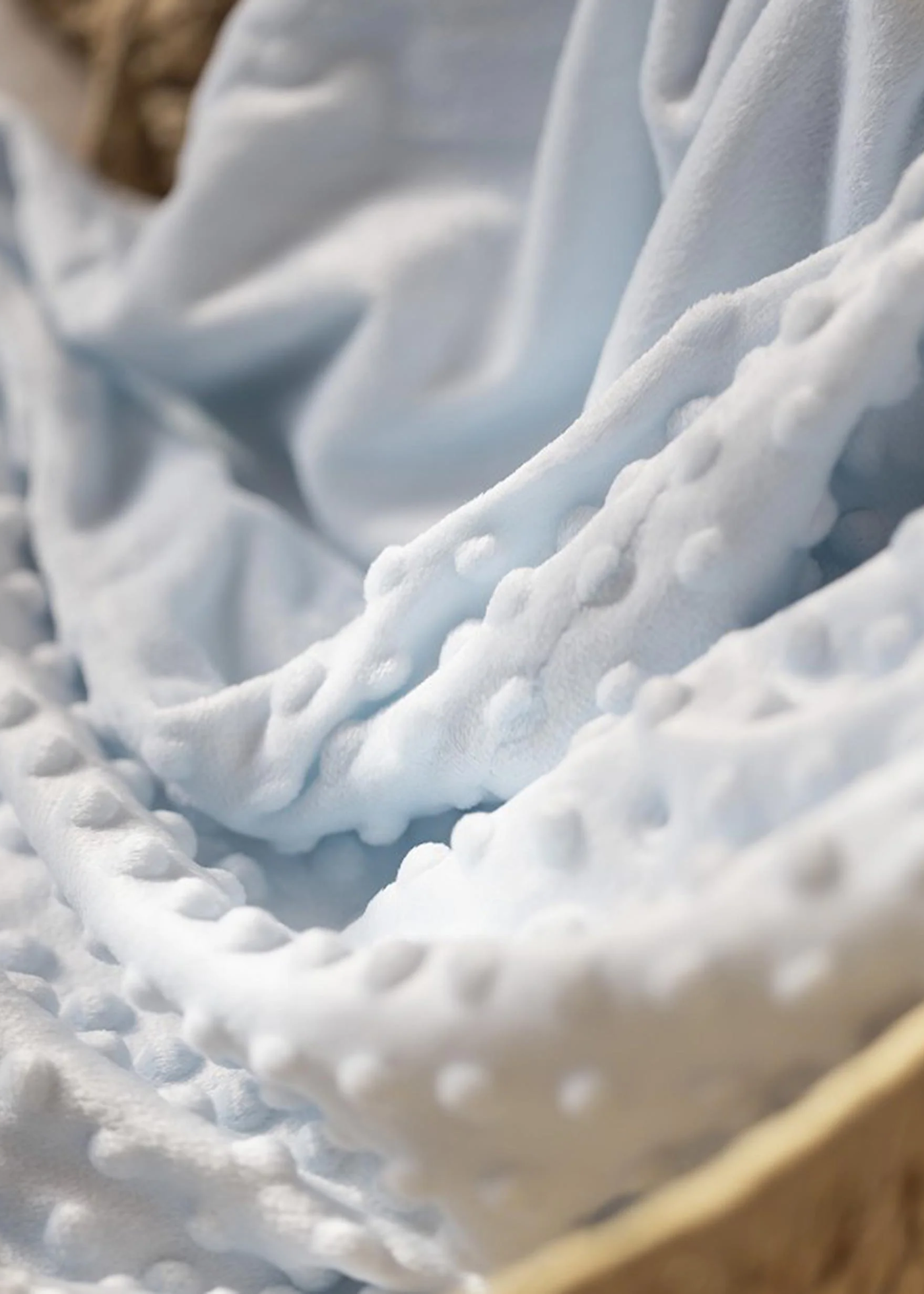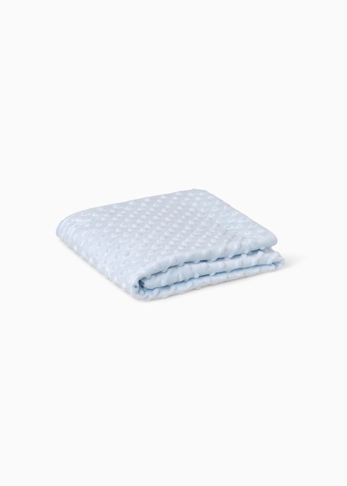 Manta de bebé com toque aveludado e acabamento em bolha. Quente e muito macia, é perfeita para manter o seu bebé aconchegado e confortável em qualquer situação.