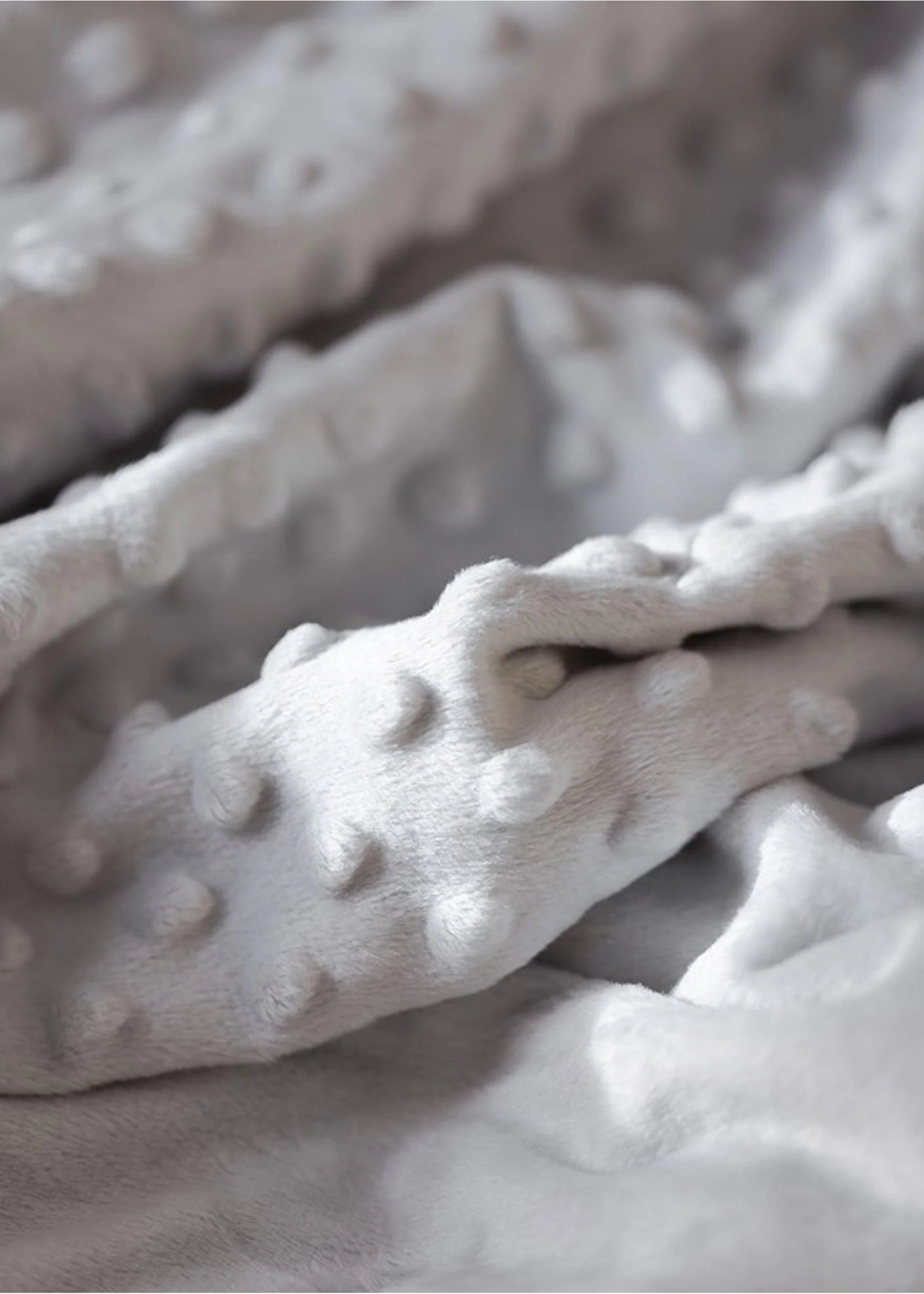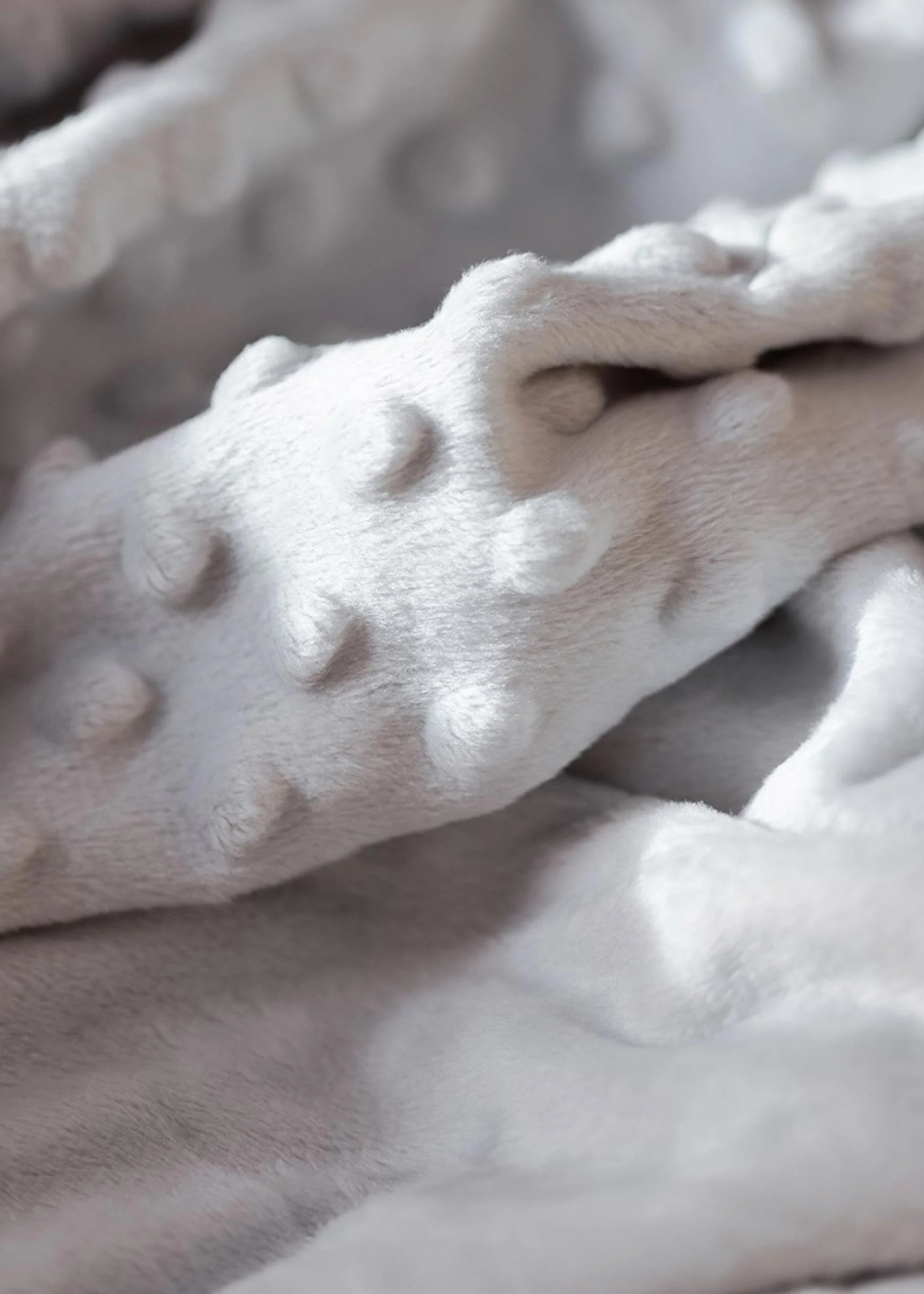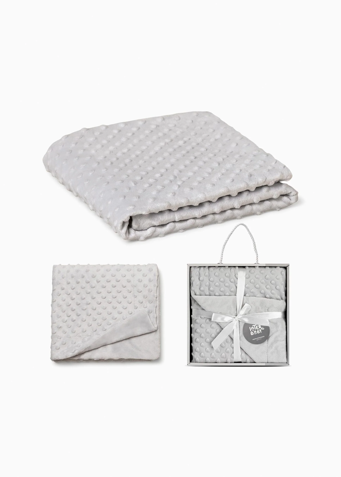 Manta de bebé com toque aveludado e acabamento em bolha. Quente e muito macia, é perfeita para manter o seu bebé aconchegado e confortável em qualquer situação.