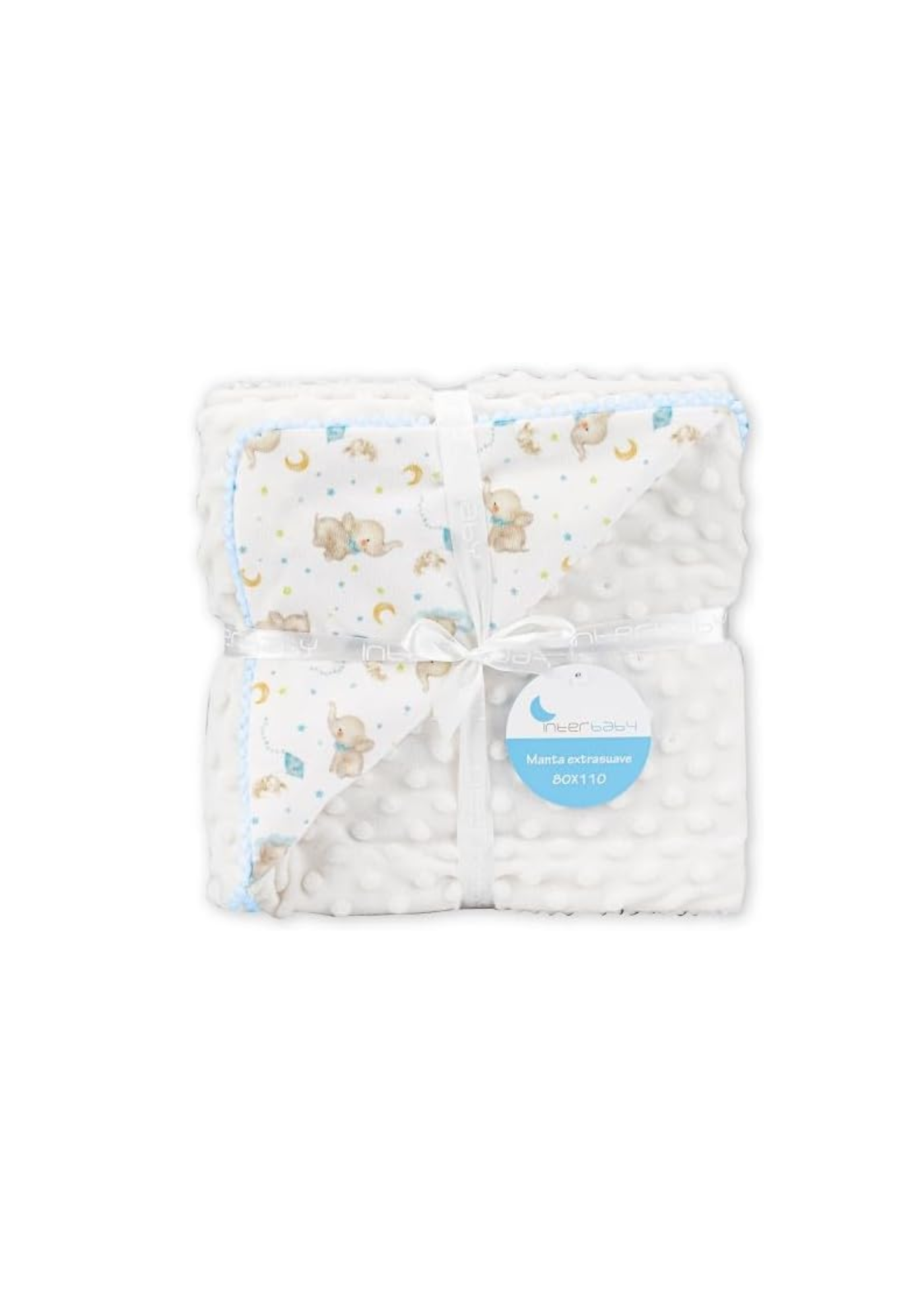 Manta de bebé com toque aveludado e acabamento em bolha. Quente e muito macia, é perfeita para manter o seu bebé aconchegado e confortável em qualquer situação.