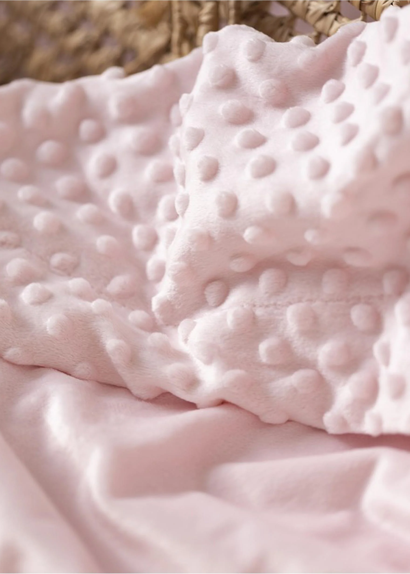 Manta de bebé com toque aveludado e acabamento em bolha. Quente e muito macia, é perfeita para manter o seu bebé aconchegado e confortável em qualquer situação.