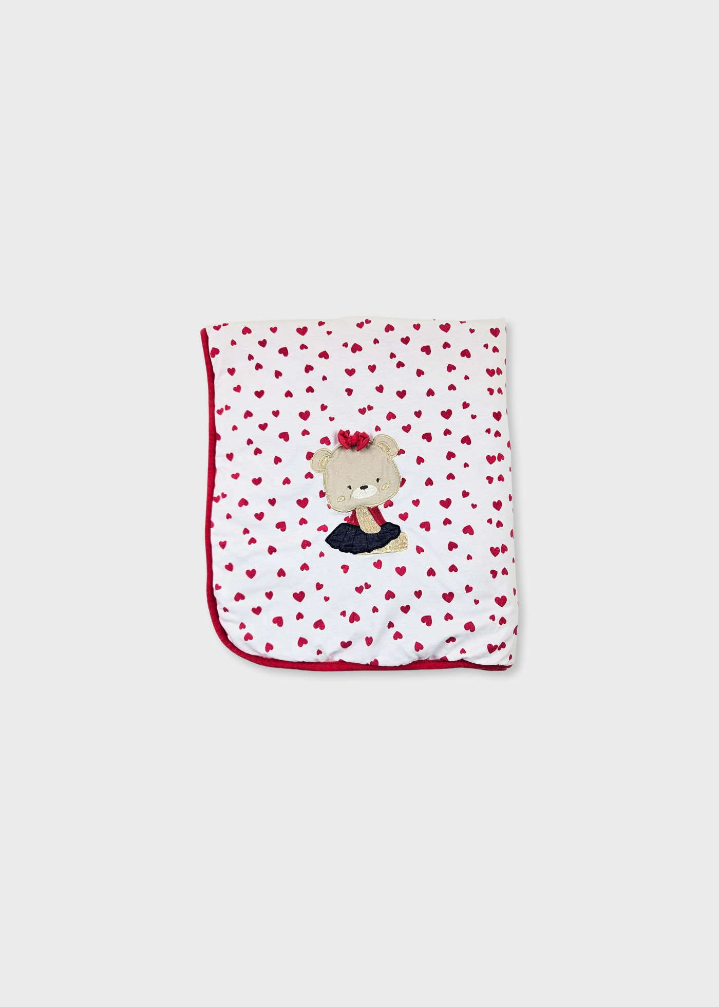 Manta de algodão, com designe estampado. A manta de menina com a medida de 80cm X 80cm, permite usar em vários momentos da menina. Para cobrir, enrolar, opção para ter sempre perto da bebé. O algodão permite manter a temperatura adequada da bebé.
