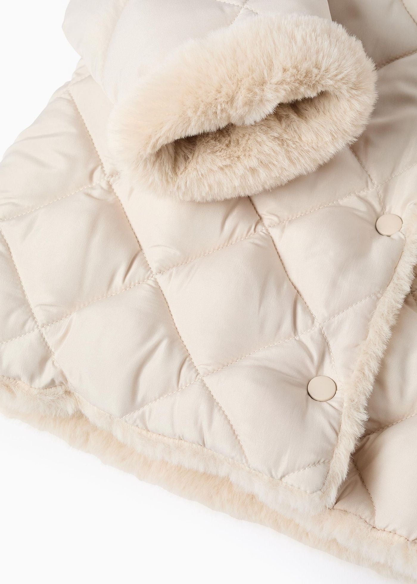 Parka Acolchoada com Forro Felpudo para Bebé Menina, Bege
