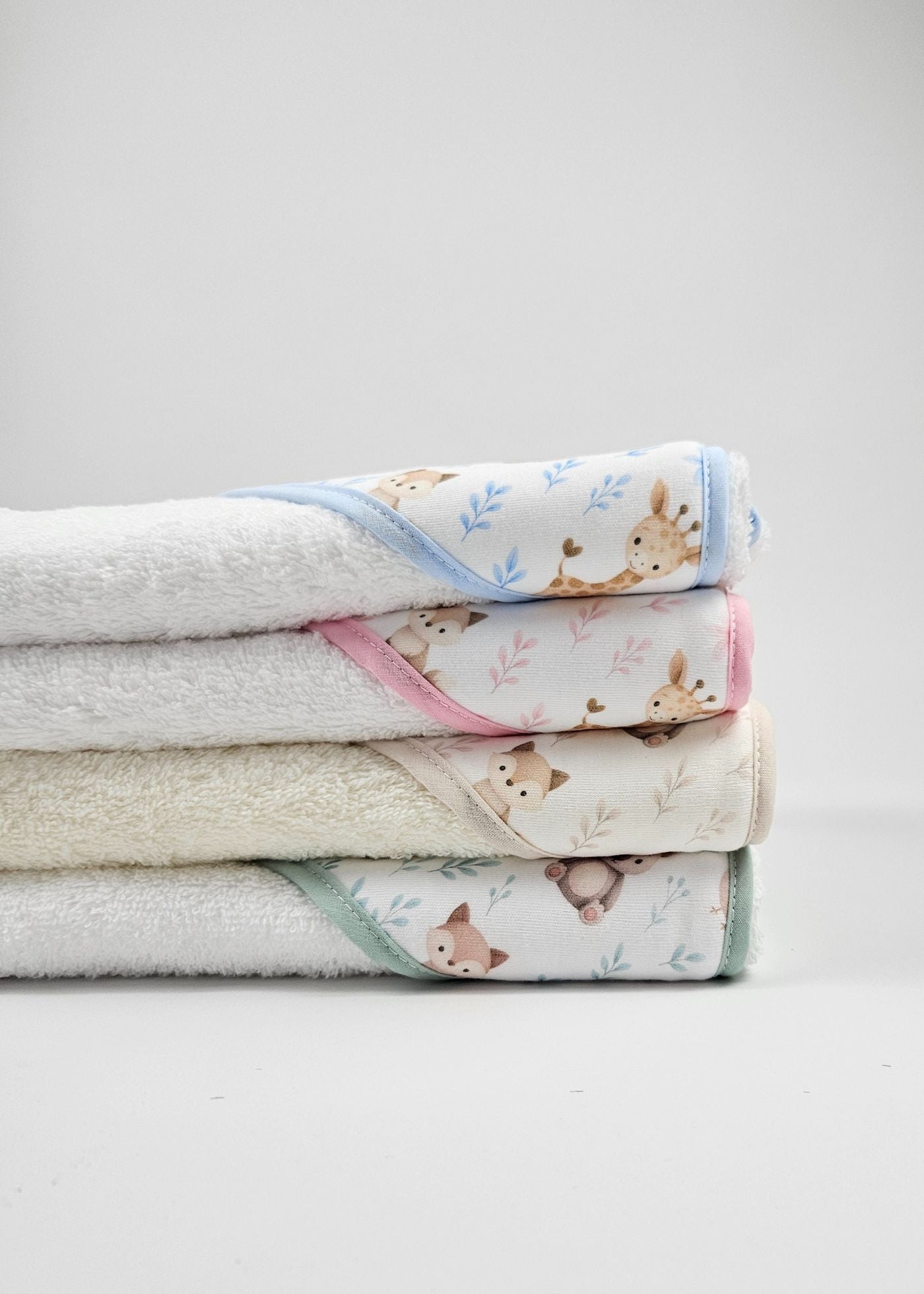 Toalha de banho com capuz, 100% algodão, ideal para cobrir e aconchegar o bebé após o banho.